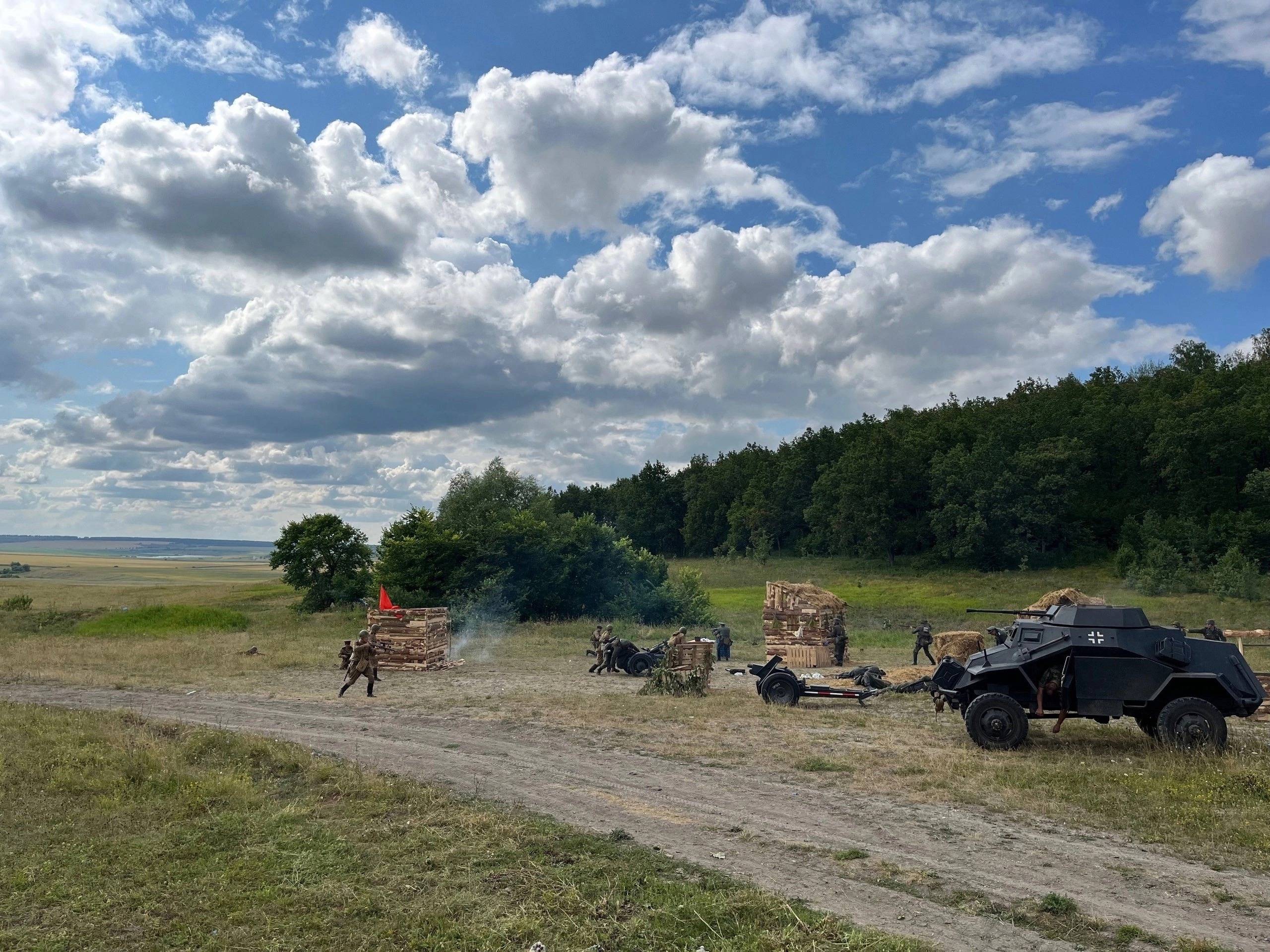 Реконструкторы восстановили события, произошедшие в 1943 году на высоте, расположенной в Горловском районе Донецкой области в бессейне рек Крынка и Миус – кургане «Саур-Могила», где погибли свыше 23 тысяч солдат и офицеров 5-й ударной армии.