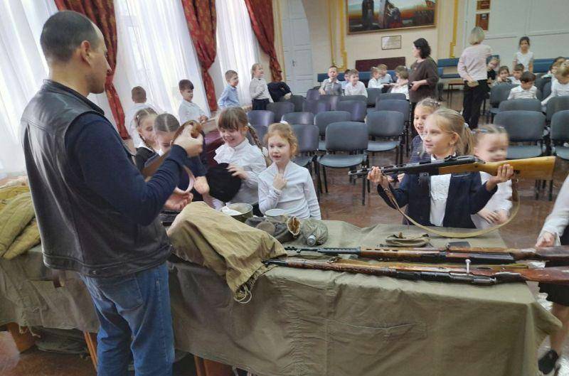 Ребятам рассказали о вооруженных силах в Древней Руси, Российской империи, героях Великой Отечественной войны 1941-1945 годов, показали предметы обмундирования, вооружения и снаряжения бойца Красной Армии этого периода.