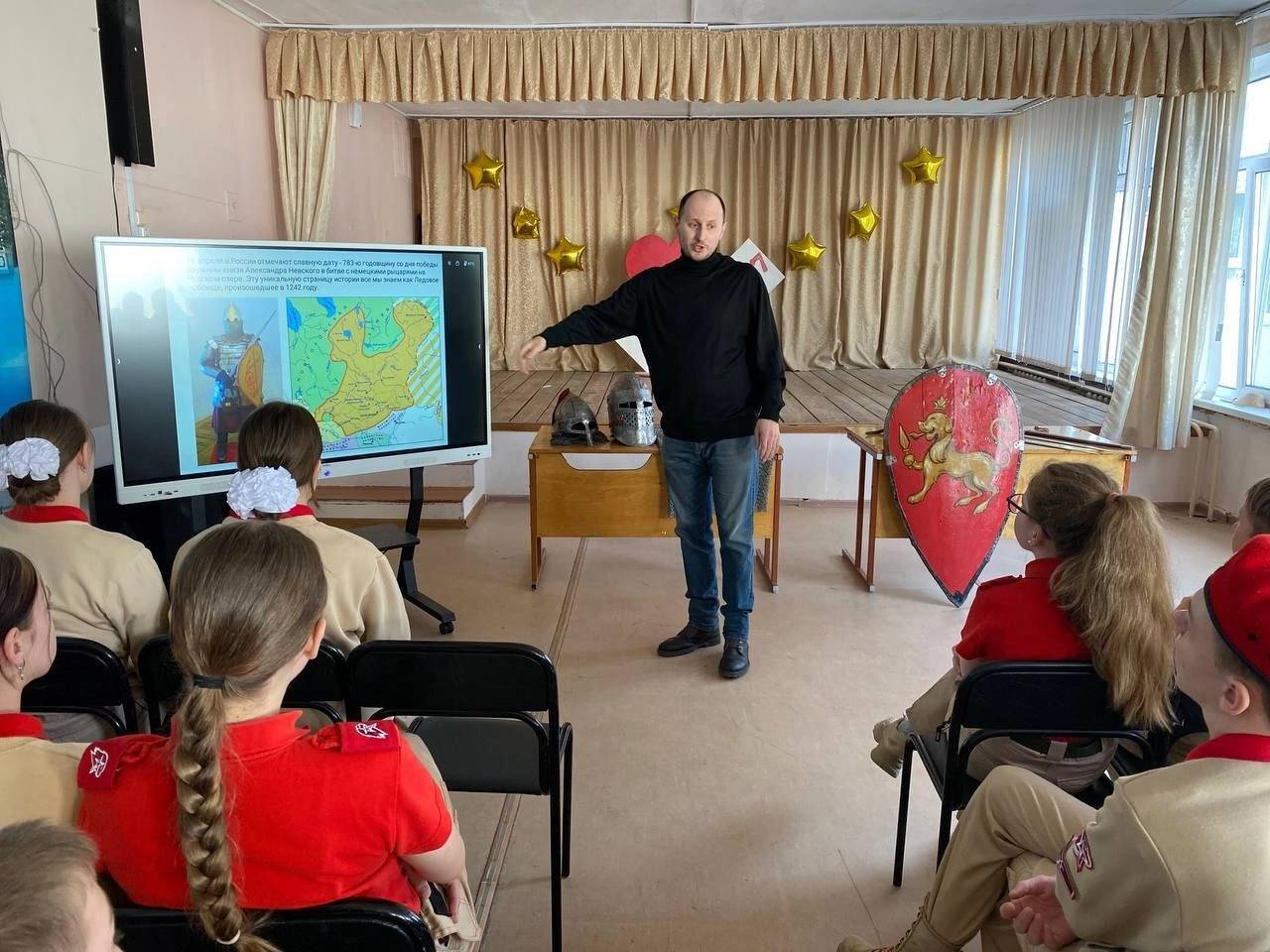2 апреля сотрудники ОГБУ «Центр патриотического воспитания Ульяновской области» организовали и провели мероприятие (урок мужества и военной истории), посвященное памятной дате России - 18 апреля – День победы русских воинов князя Александра Невского над немецкими рыцарями на Чудском озере (Ледовое побоище, 1242 год) для обучающихся 6-х классов МБОУ «Средняя школа № 47 имени И.Я. Яковлева».