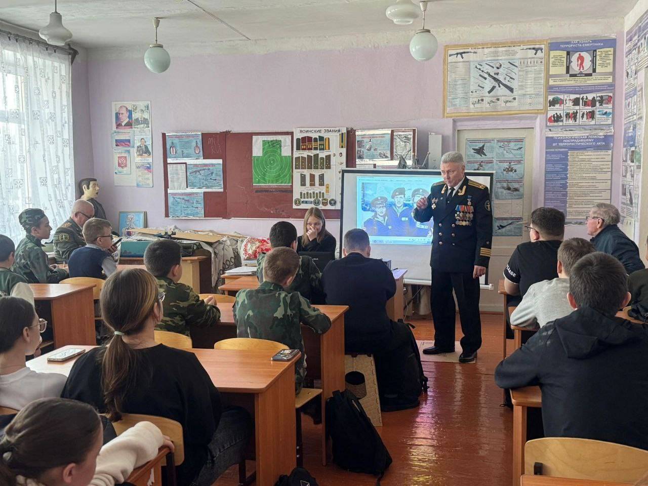6 февраля член Совета РО РВИО, председатель УРОО ОВ ВМФ «МОРСКОЕ БРАТСТВО», капитан 2 ранга запаса Александр Емелькин, член Совета РО РВИО, гвардия полковник Евгений Демич провели уроки мужества для учащихся Цильнинской средней школы имени Героя Советского Союза Н.И. Малышева.