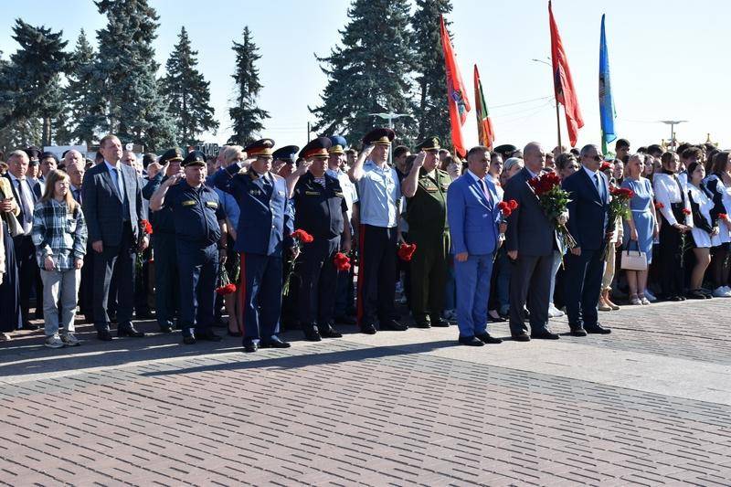 В церемонии возложения цветов приняли участие: Губернатор Ульяновской области А. Ю. Русских, Председатель Законодательного собрания В.В. Малышев, Главный федеральный инспектор по Ульяновской области Ю.П. Кулик, депутаты Законодательного Собрания Ульяновской области, представители Правительства Ульяновской области, духовенства, администрации города Ульяновск, депутаты Ульяновской Городской Думы, руководители силовых ведомств, военнослужащие Ульяновского территориального гарнизона, Росгвардии, ОМОН, СОБР и МЧС, ветераны Вооружённых Сил, МВД и ФСБ России, участники СВО, локальных войн и конфликтов, представители общественных организаций, юнармейцы, студенты СПО и высших учебных заведений, школьники.