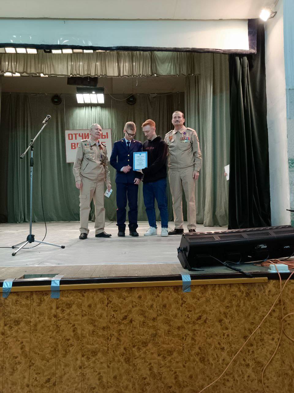 5 марта в здании Дома Офицеров Ульяновского гарнизона прошло официальное закрытие месячника военно-патриотической работы в Ленинском районе города Ульяновска, на котором было проведено награждение лучших учащихся, участвовавших в различных конкурсах под лозунгом "Отчизны верные сыны". Исполнители , победившие в своих номинациях получали дипломы, грамоты и ценные подарки от представителей Ульяновского Областного отделения ВООВ "Боевое братство". В начале мероприятия ветераны, наиболее активно, работавшие в течении года Демич Евгений Алексеевич, Михайлов Владимир Валентинович, Новосельцев Николай Михайлович, Юсупов и Семенычев были поощрены Благодарственными письмами Главы г. Ульяновска Александра Егоровича Болдакина. Особенные слова в этот вечер звучали в адрес студентки колледжа культуры и искусства, инвалида по зрению, исполнившую песню "Хатынь". Всего на мероприятии присутствовало более 200 человек.