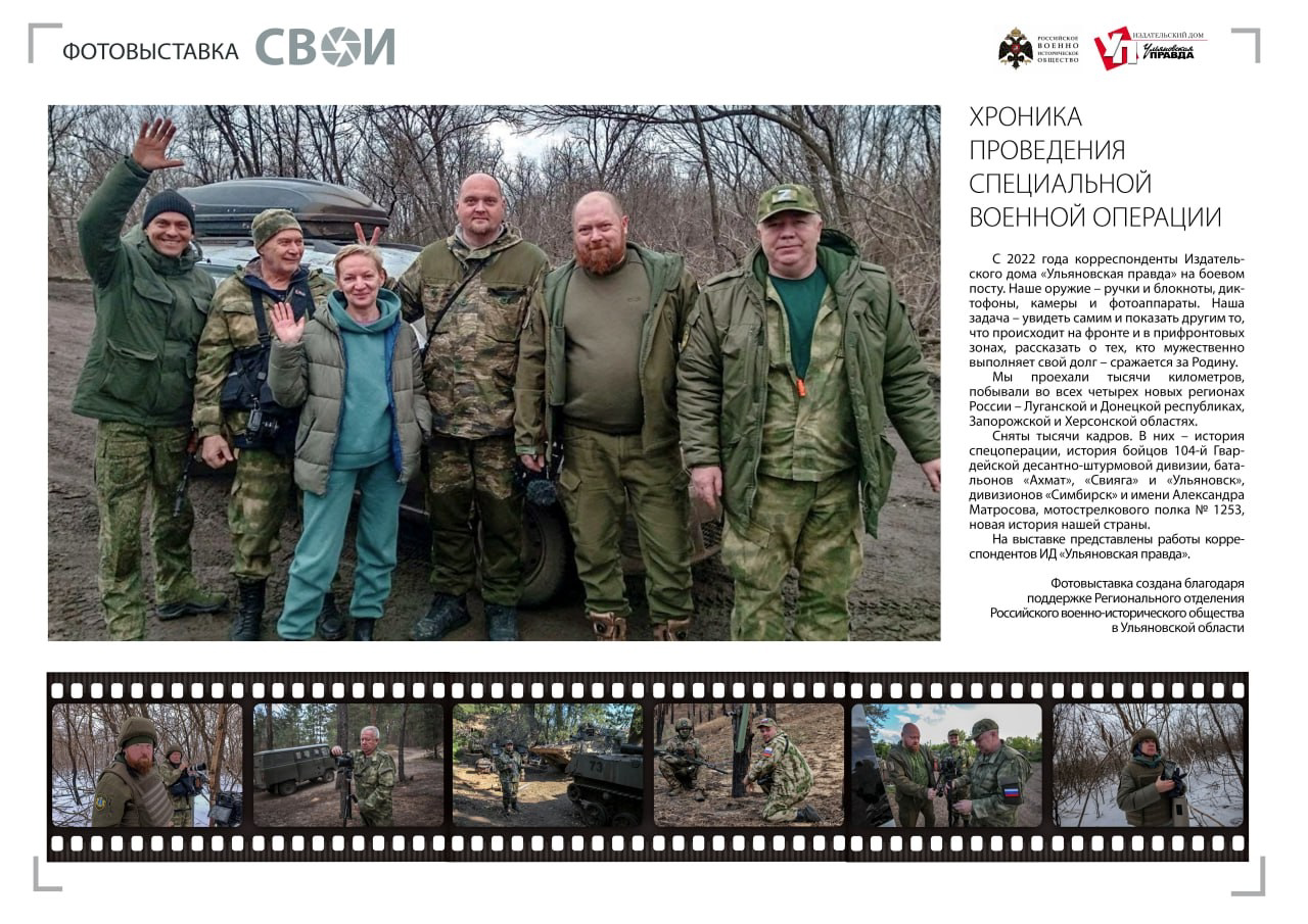 «Работа, проделанная ульяновскими журналистами, бесценна, ведь он побывали в самой гуще событий СВО, встречались не только с бойцами, но и с мирным населением. И всё это подробно запечатлено на фотографиях. Эта выставка уже побывала в Крыму в Арт-кластере «Таврида» на программе «СВОё творчество», она размещалась в Ульяновских педагогическом и техническом университетах, в Межвидовом региональном учебном центре войск связи, и везде вызвала большой интерес», - сказал председатель РО РВИО Игорь Петрищев.