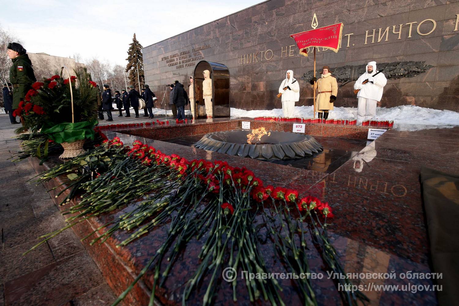 В память о погибших воинах-ульяновцах, отдавших свои жизни за свободу и процветание Родины, а также о мирных жителях блокадного города Ленинграда, погибших при бомбёжках, артобстрелах и умерших от голода была объявлена минута молчания. Прозвучал Гимн Российской Федерации и троекратный оружейный салют. Митинг-реквием завершился торжественным маршем военнослужащих Ульяновского территориального гарнизона.