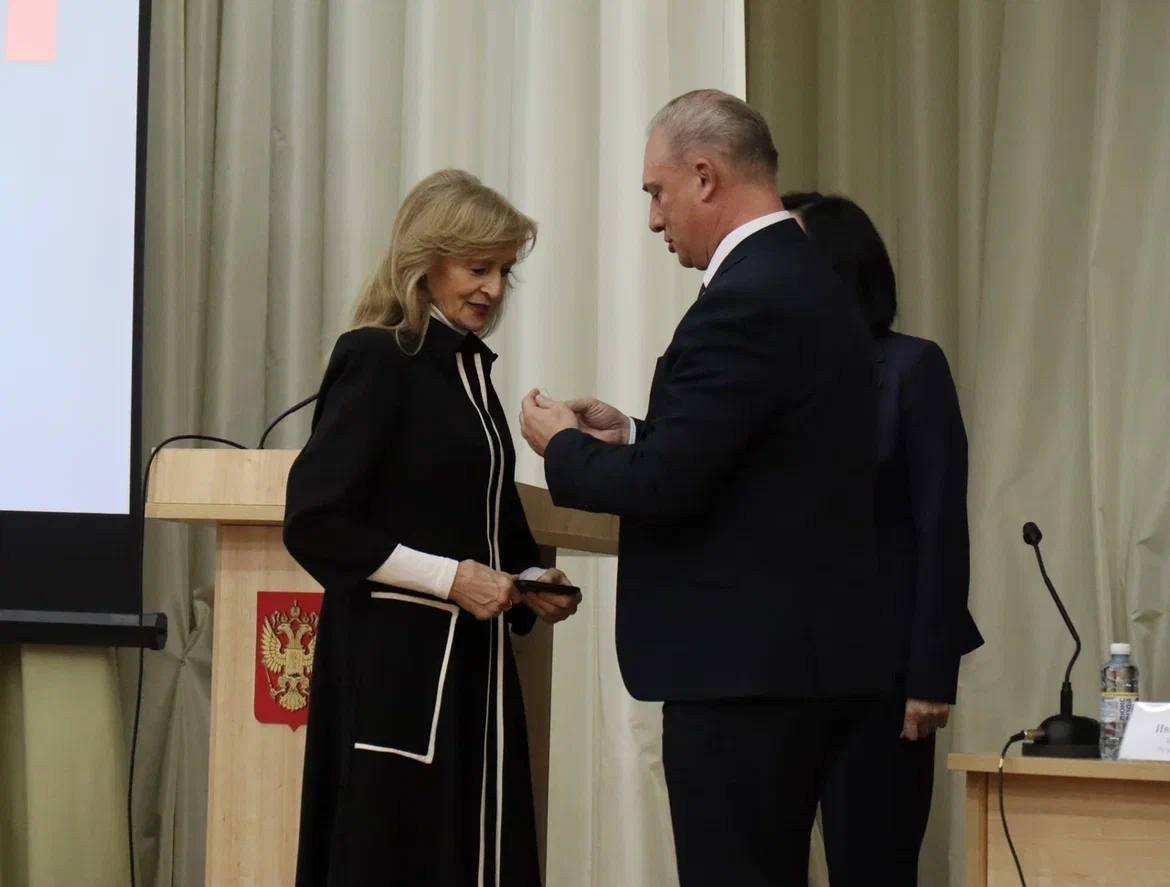 Председатель Челябинского регионального отделения Российского военно-исторического общества - Андрей Шмидт вместе с Главой города Челябинска - Натальей Петровной Котовой вручили памятную медаль Российского военно-исторического общества - РВИО «800 лет со дня рождения Александра Невского» Диде Надежде Артемьевне за значительный вклад в развитие культуры, искусства и сохранение исторической памяти.