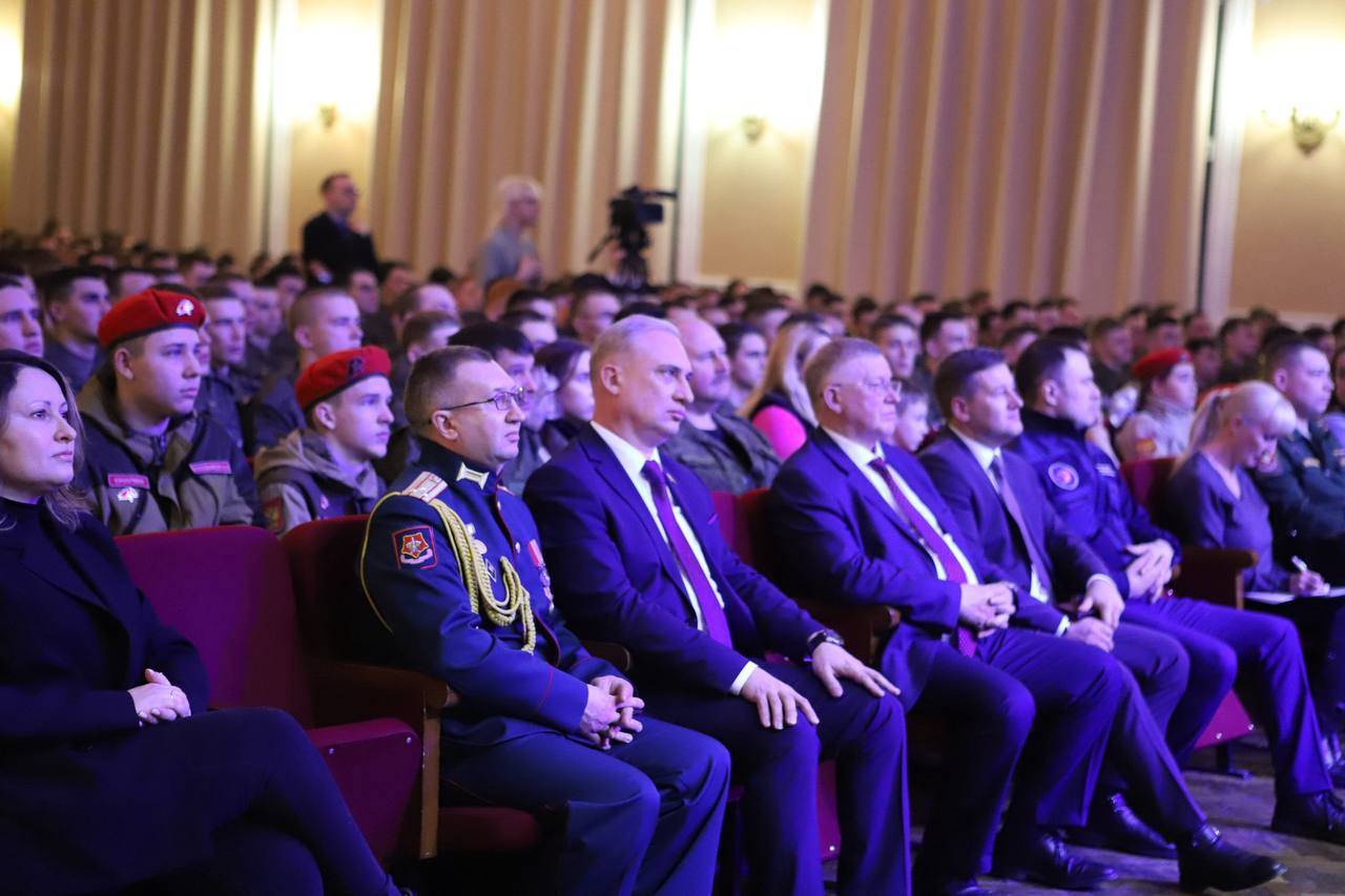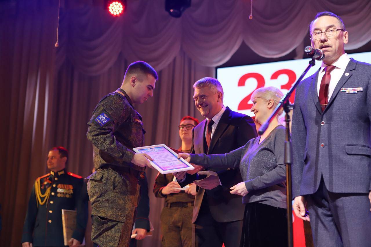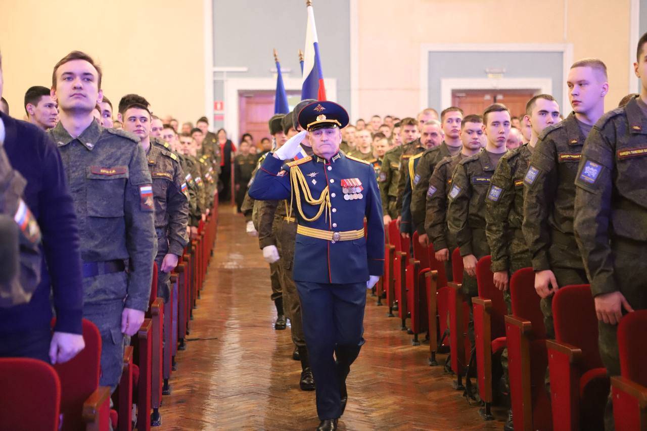 Андрей Владимирович поздравил всех присутствующих с наступающим праздником: “Стране нужны ваша военная выправка, выучка, глубокое знание воинской специальности. Желаю вам смело овладевать знаниями и в части военной подготовки и гражданскими специальностями. Это очень нужно нашей Родине”.