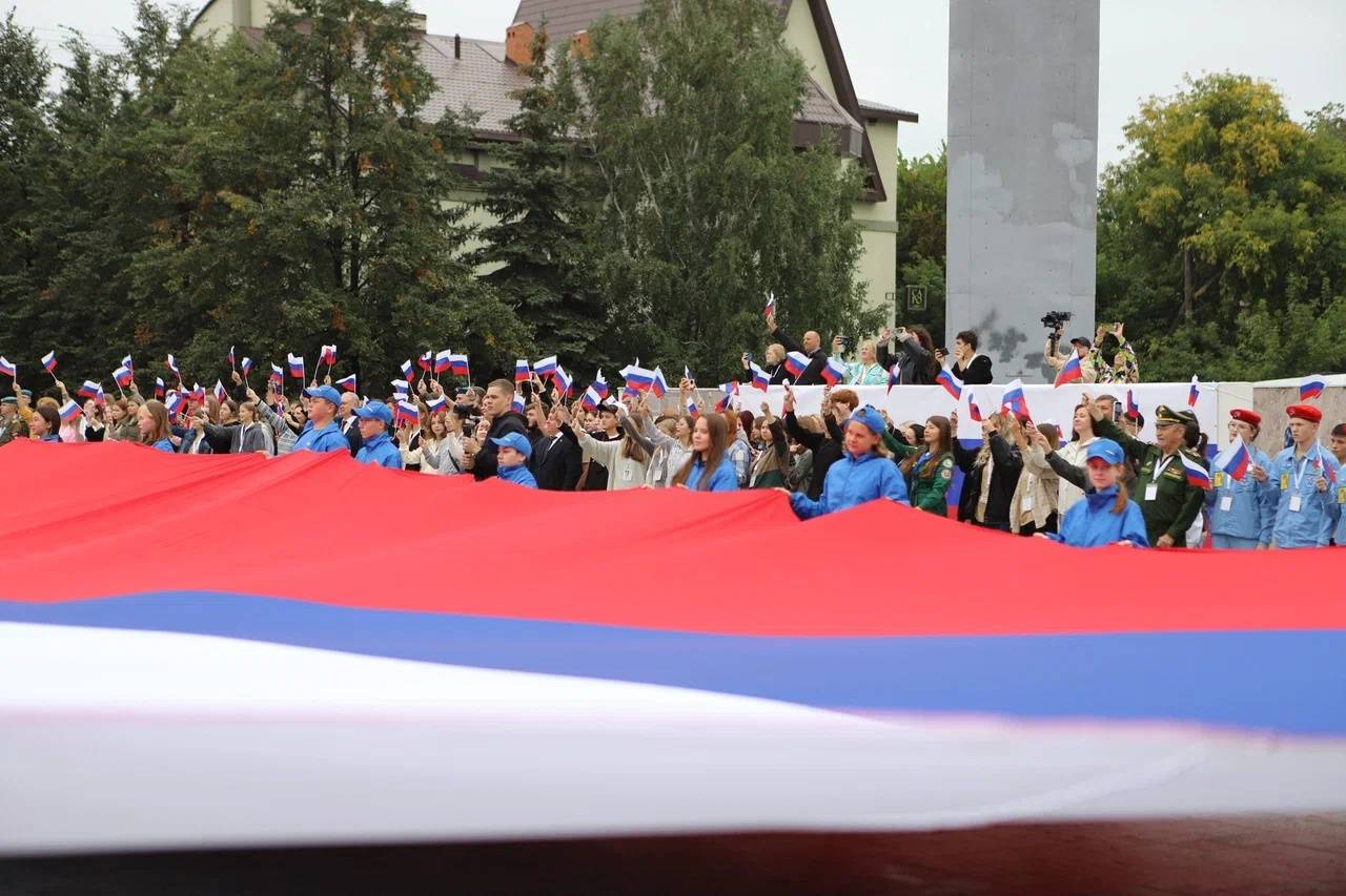 Все вместе дети поучаствовали во флешмобе ко Дню российского флага, растянув в центре Челябинска самый большой в городе триколор.