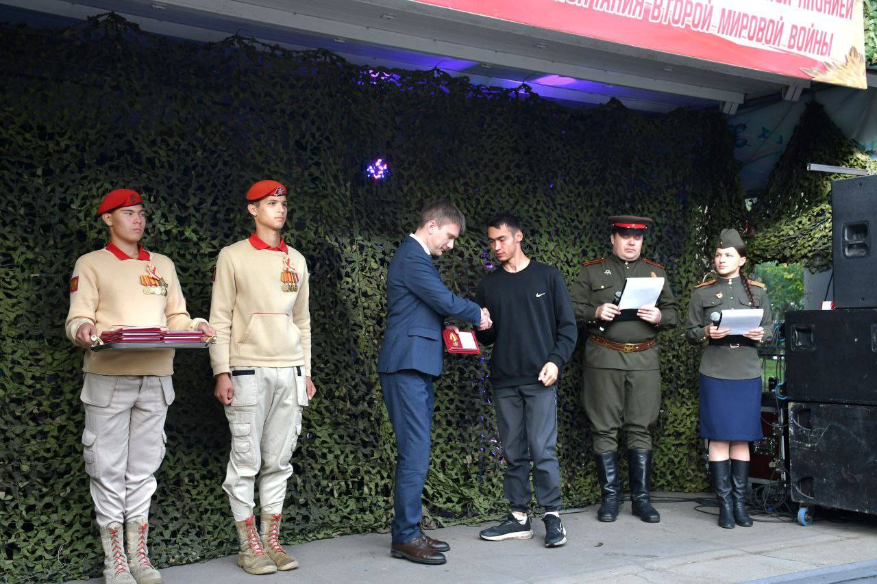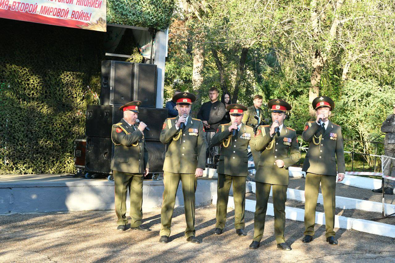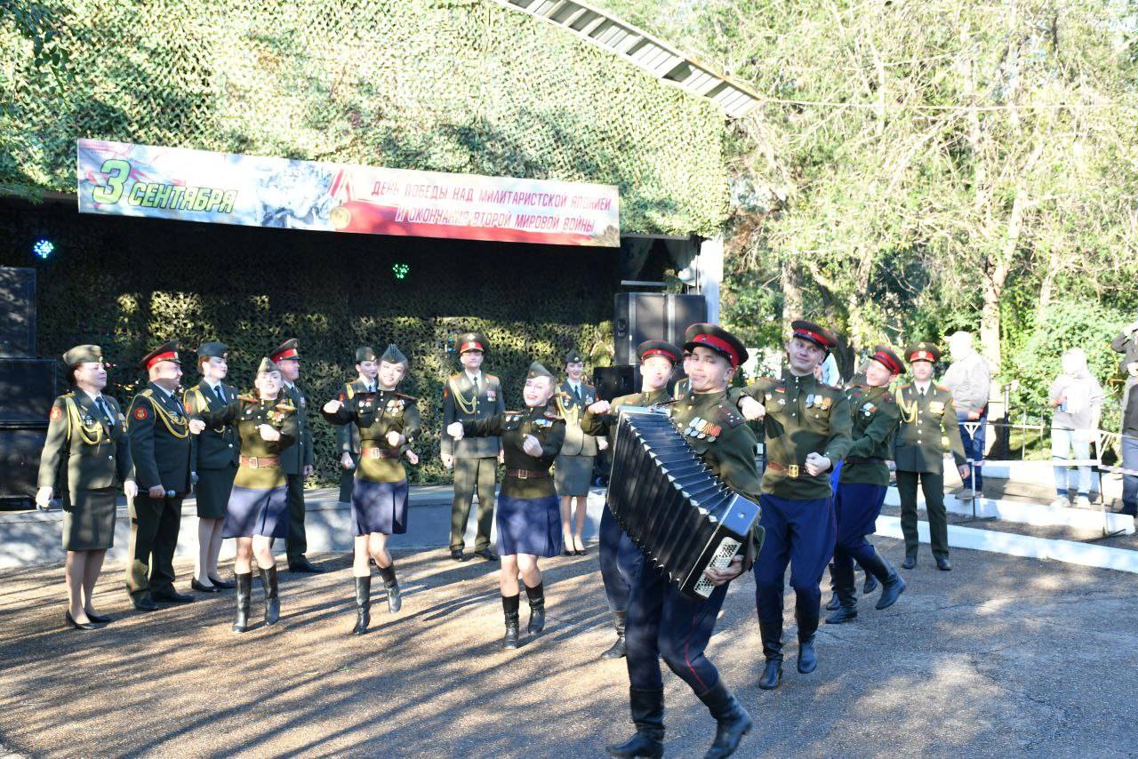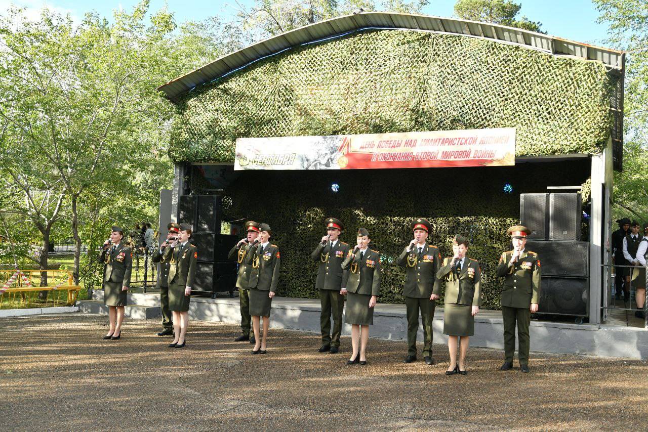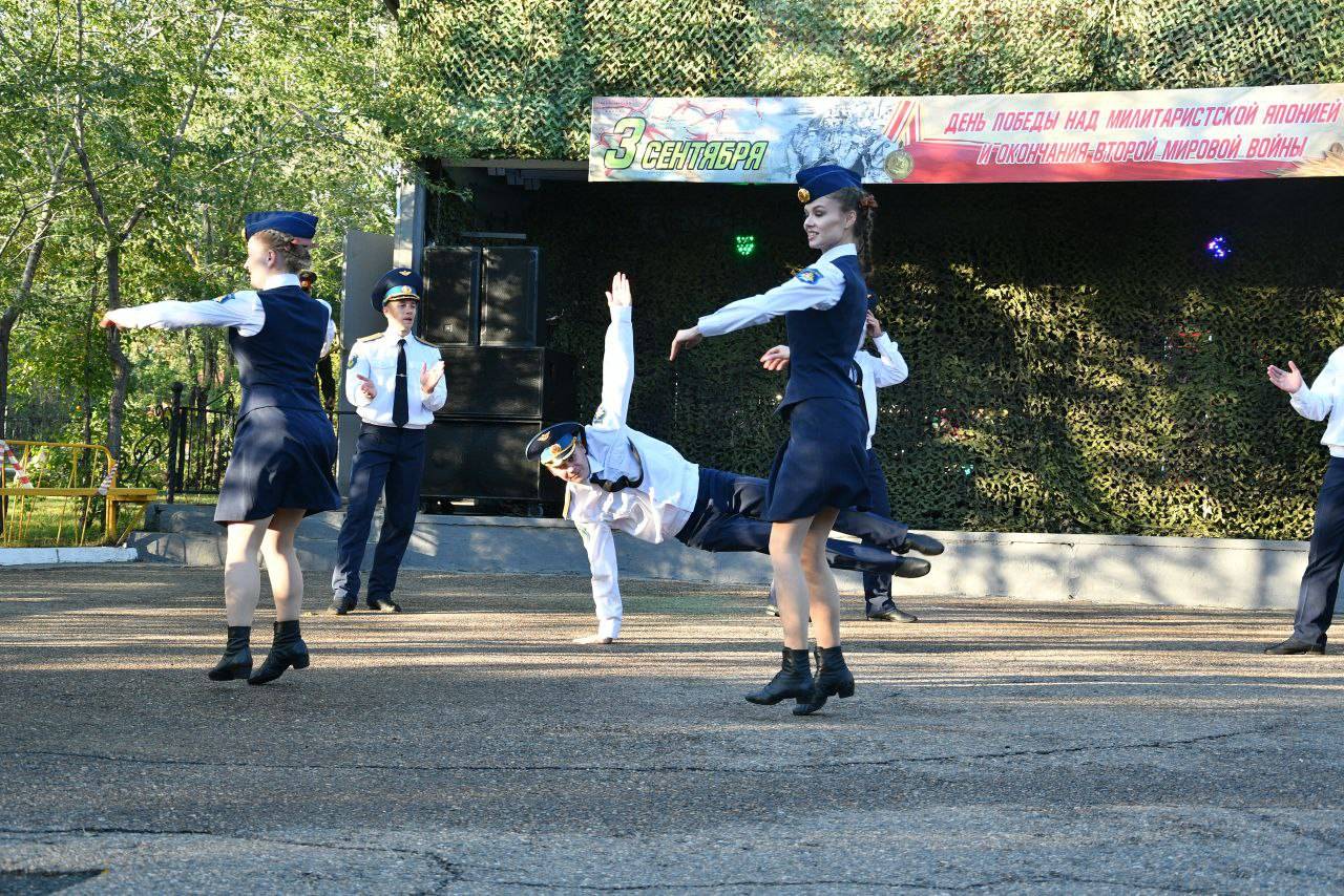 Открыли праздничный концерт юнармейцы военно-патриотического клуба Дома офицеров «Патриоты Забайкалья», которые показали дефиле с оружием. Затем с приветствием и поздравлением в честь праздника к присутствующим обратился заместитель председателя правительства Забайкальского края Вячеслав Кулаков. Он также вручил сотрудникам Дома офицеров медали губернатора Забайкальского края «За участие в военном параде в ознаменование 80-летия Победы в Великой Отечественной войне 1941-1945-ых годов».