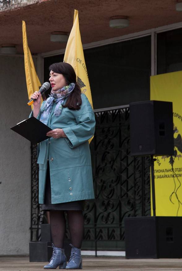Открывая торжественную церемонию, заместитель председателя Правительства Забайкальского края, председатель регионального отделения РВИО, Т.В. Цымпилова, произнесла: «Дорогие друзья! Я рада приветствовать вас в этот значимый для всех нас день, в День Великой Победы, в самом центре нашего славного города – «Города трудовой доблести!»