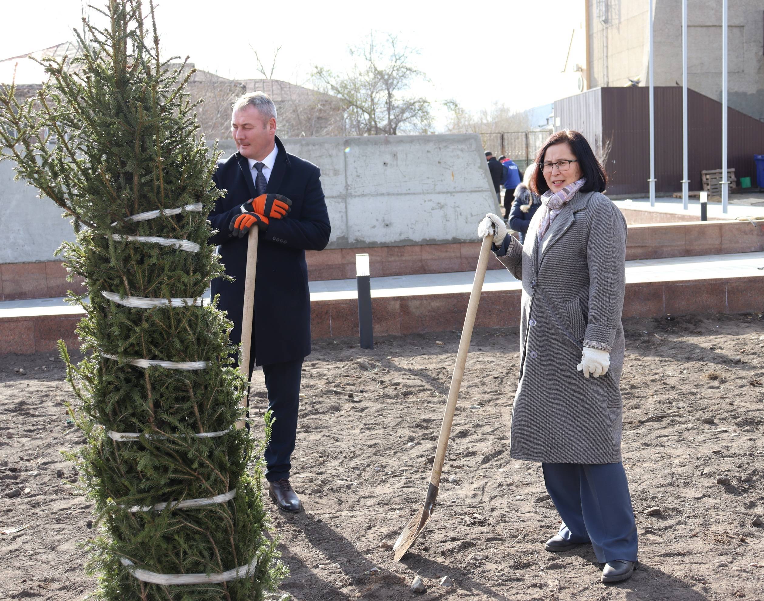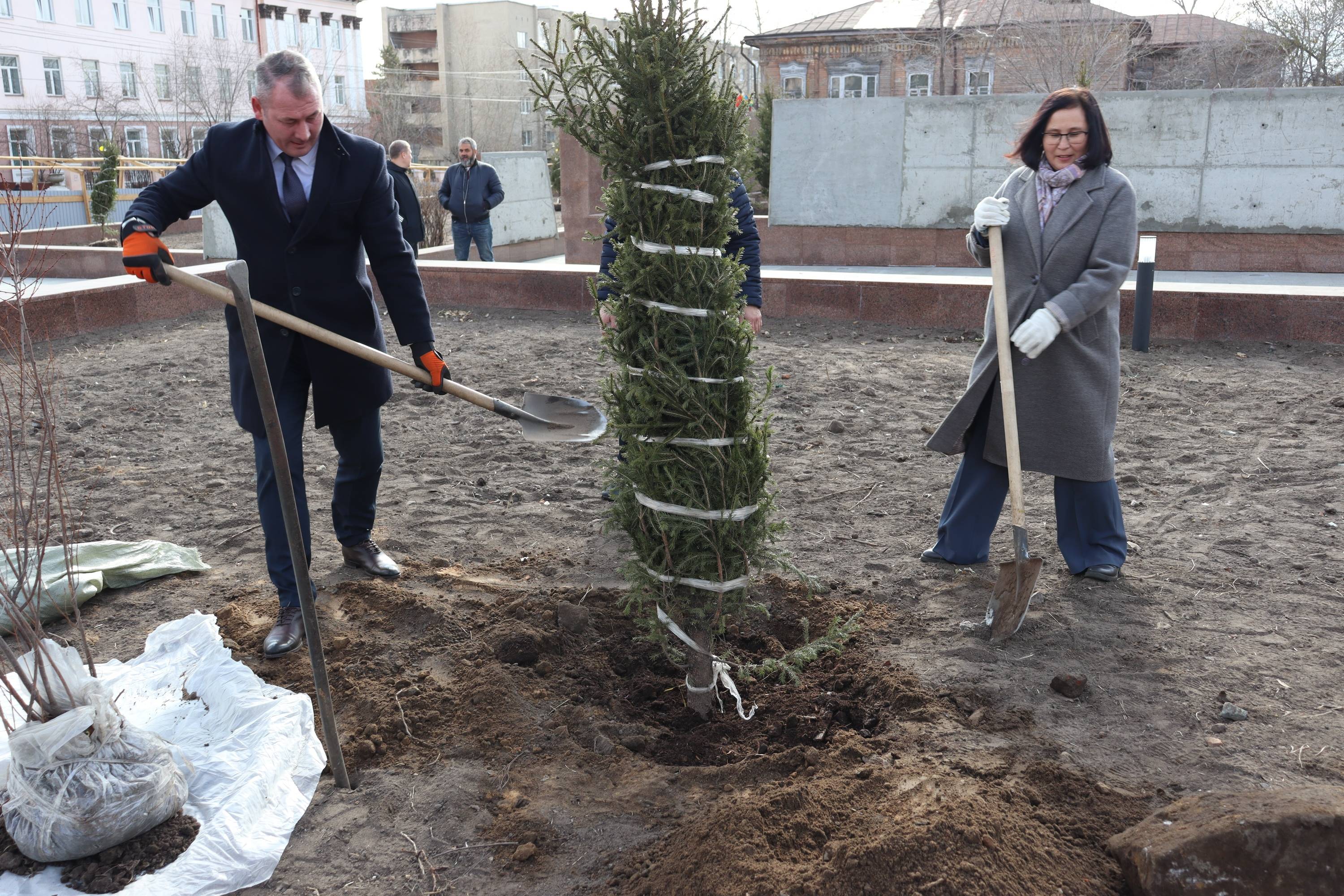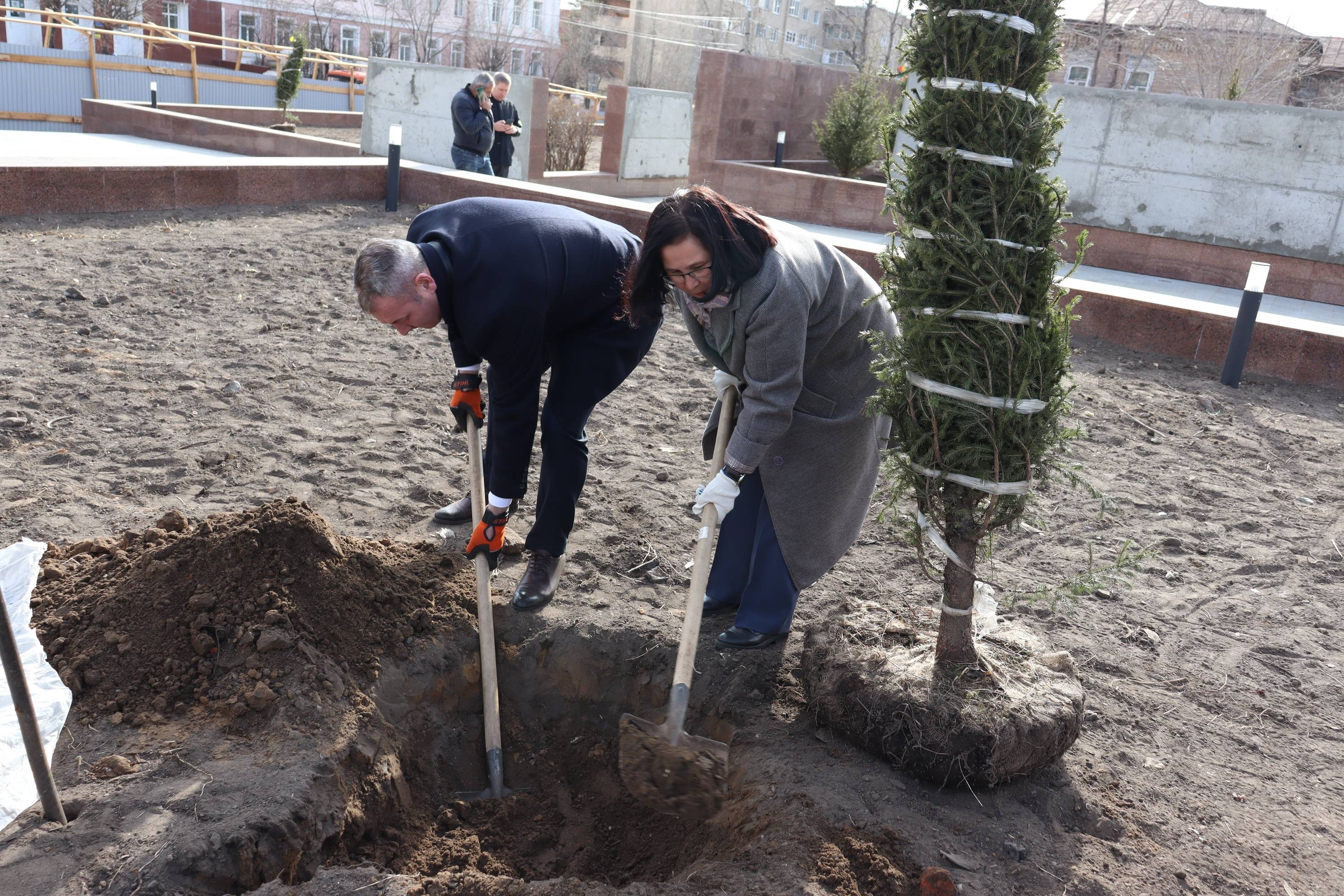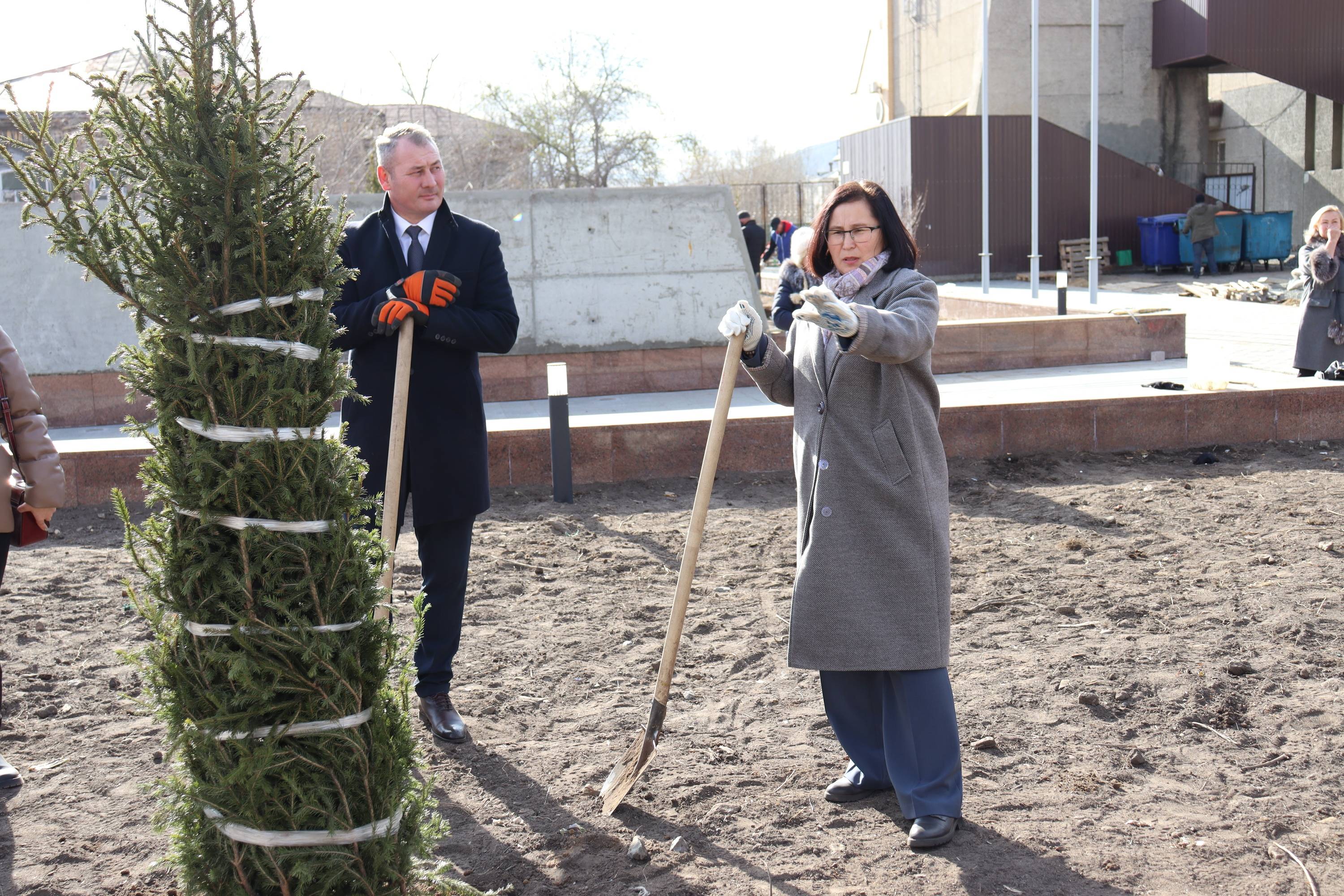 На площади мемориала были высажены крупномерные ели, степной миндаль и сирень.