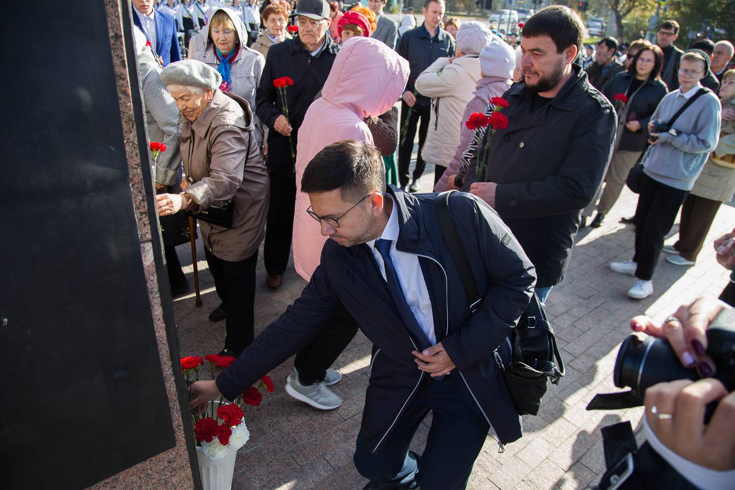 Основной день работы Международного исторического форума «Россия и страны Восточноазиатского региона. История взаимодействия» в г. Чите начался с проведения церемонии торжественного возложения цветов к Стеле «Чита – город трудовой доблести», в которой приняли участие гости мероприятия.