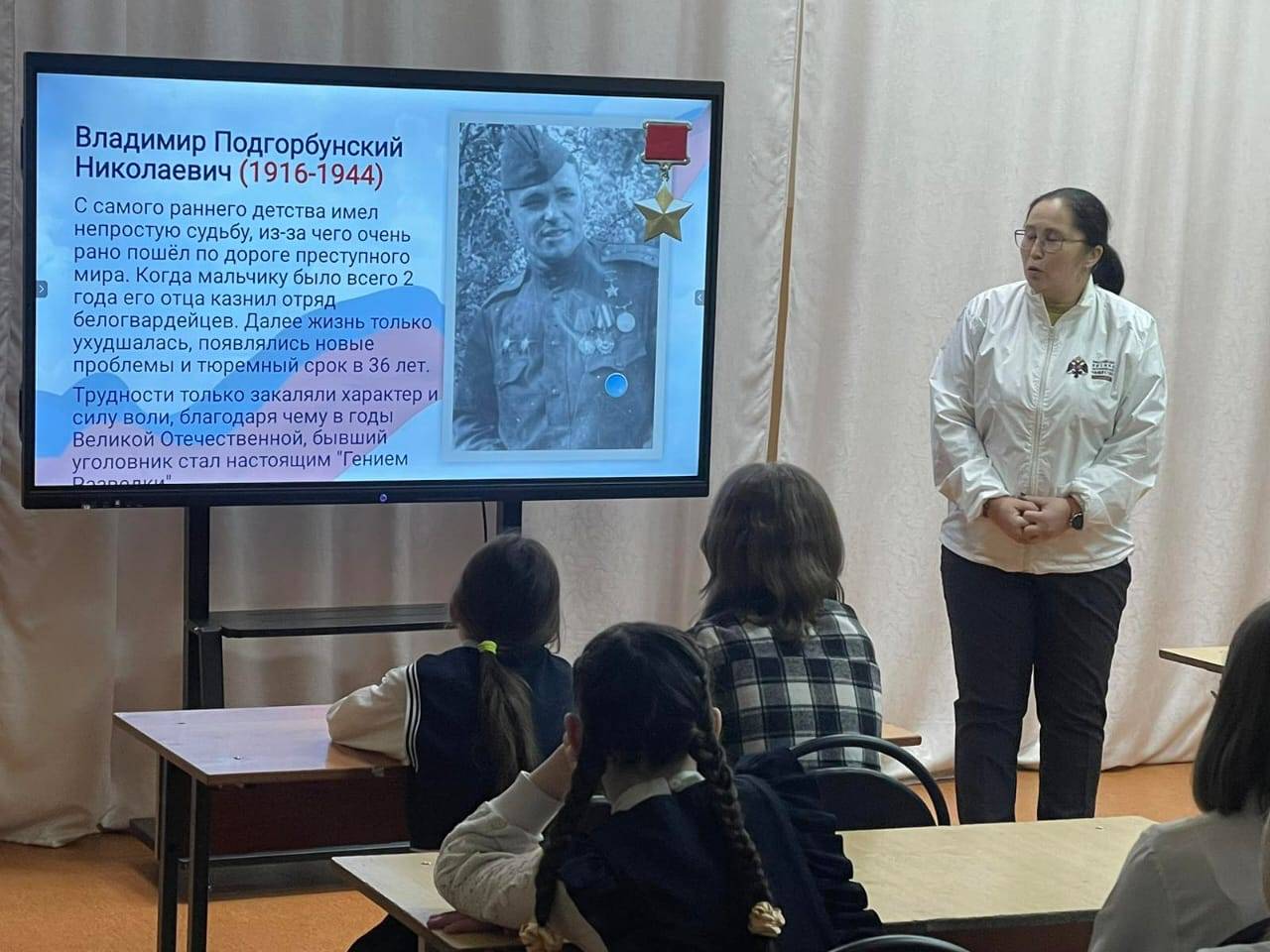 Председатель регионального отделения Российского военно-исторического общества провела урок «Разговоры о важном» для пятиклашек школы №13 г.Читы.