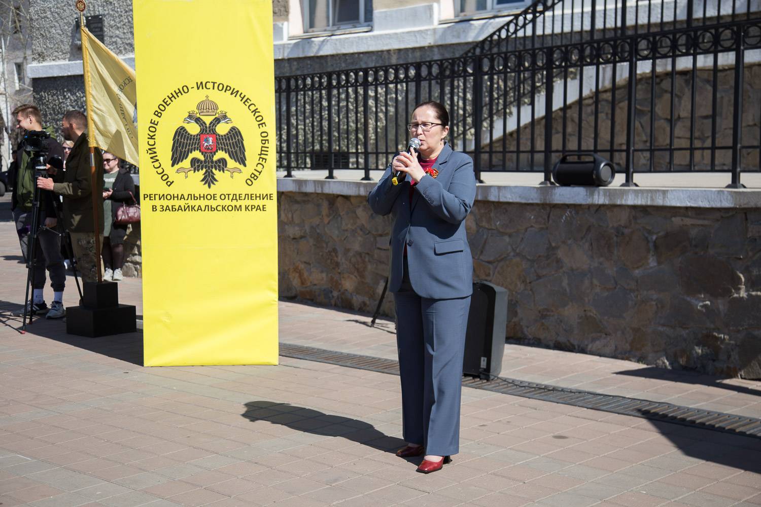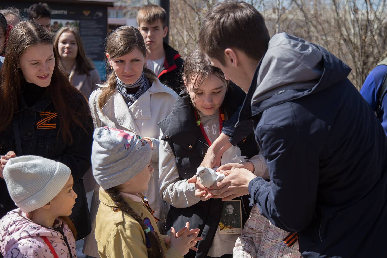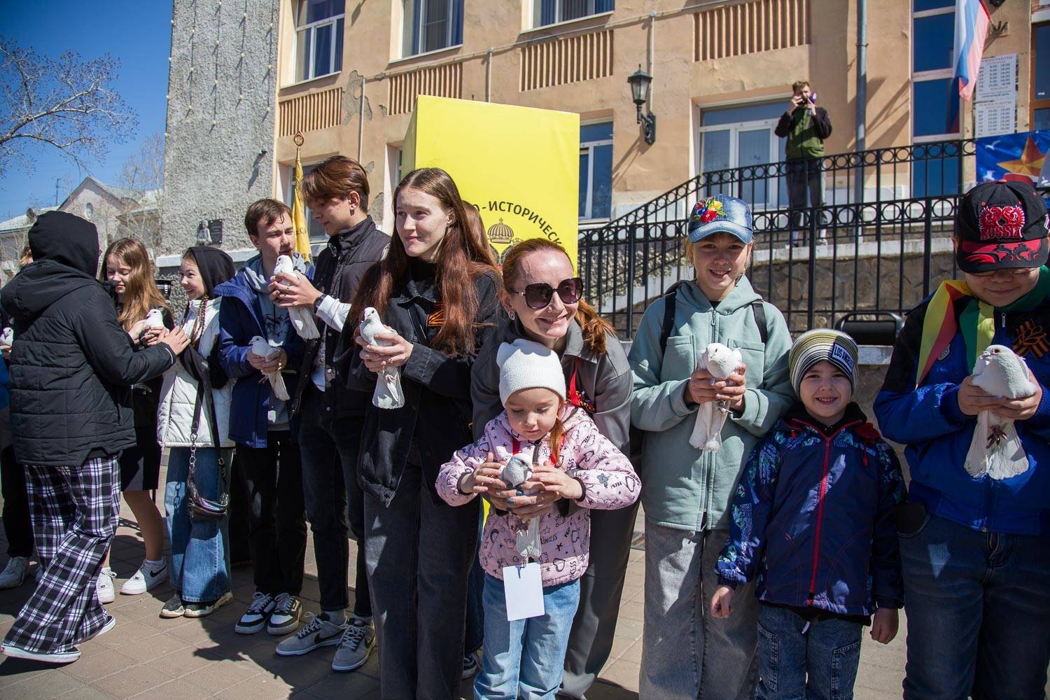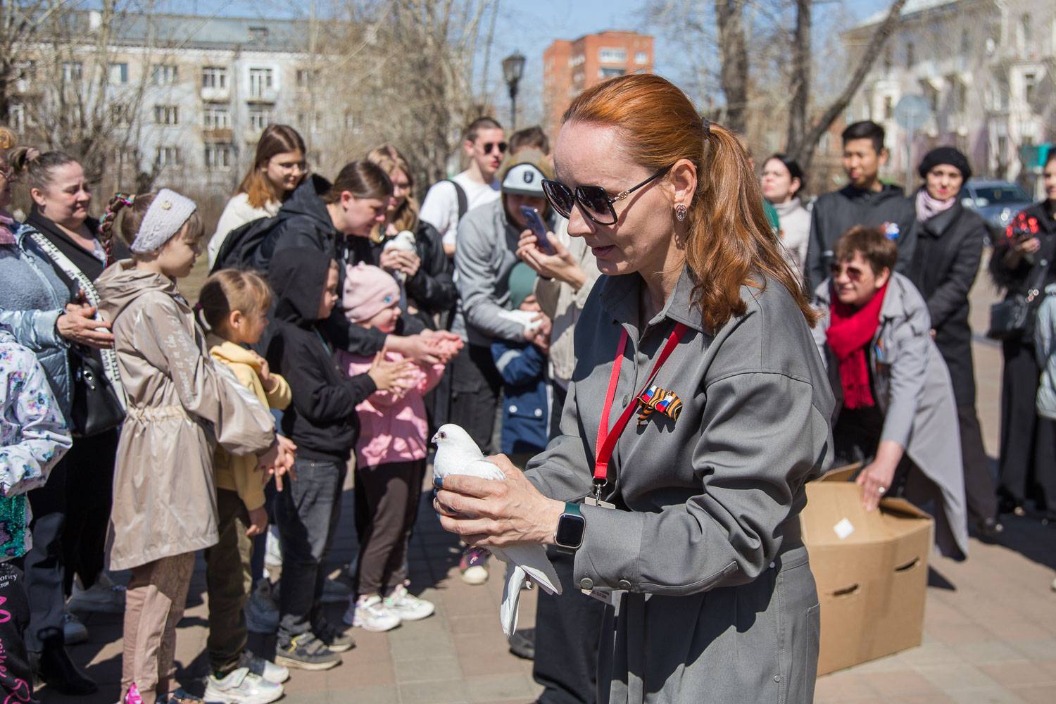 «Дорогие ребята, посмотрите на наше высокое, голубое забайкальское небо! Мы с вами живем под ним! И эту возможность подарили нам наши предки, они подарили этот мир нам! Это бесценный дар! Сегодня мы можем любить и творить, просто жить! В преддверии Дня Великой Победы мы все стали участниками замечательной акции, мы выпускаем в небо белых голубей», – с такими прекрасными словами обратилась к собравшимся заместитель председателя Правительства Забайкальского края, председатель регионального отделения РВИО Т.В. Цымпилова.