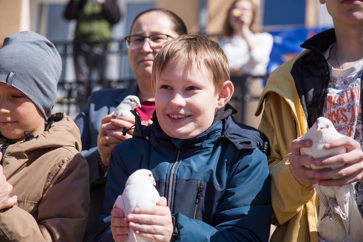 Кульминацией акции стал запуск в небо 78-ми белых голубей!