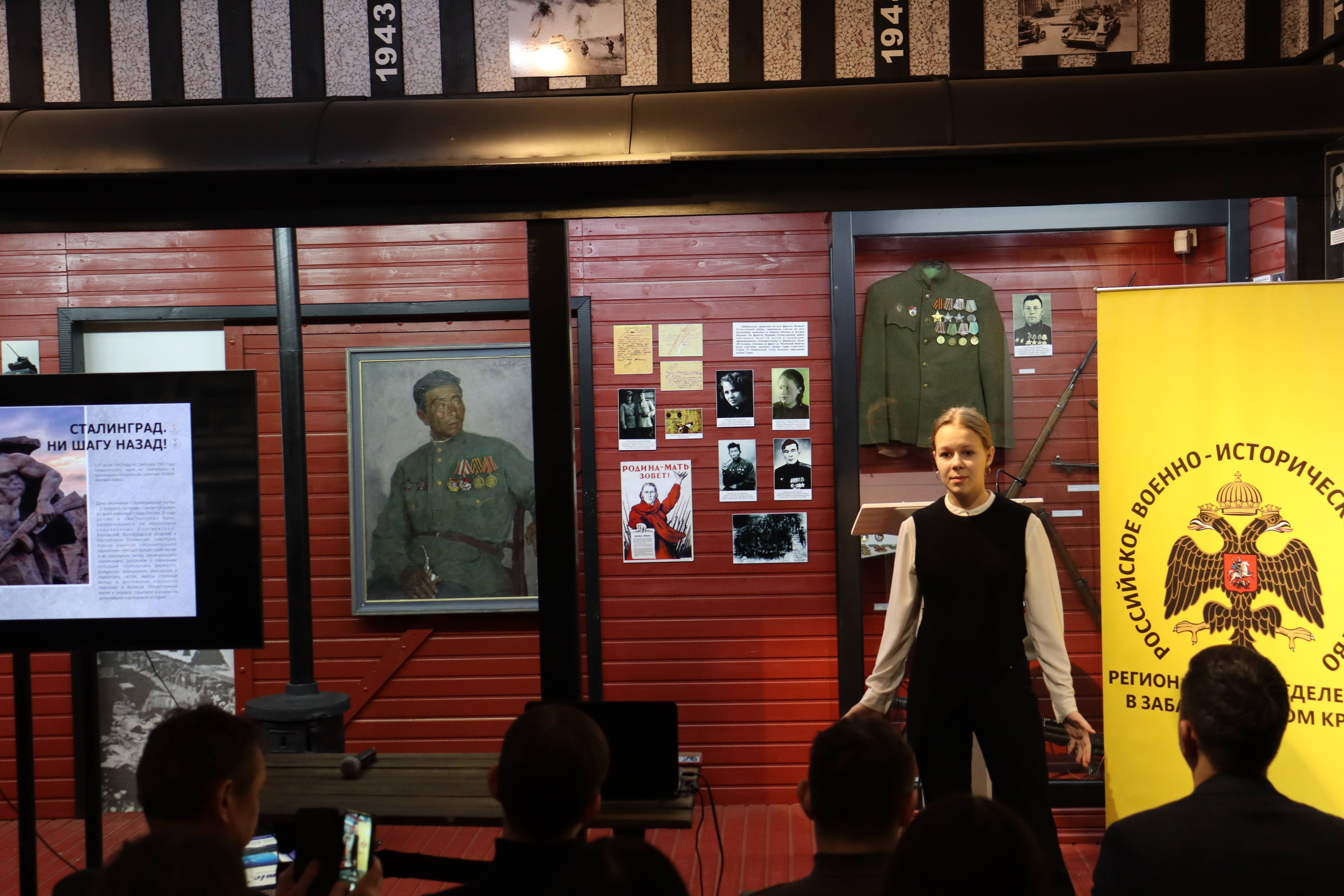 С приветственным словом перед собравшимся выступил Эдуард Шелофаст – заместитель директора краевого краеведческого музея имени А.К. Кузнецова, исполнительный директор регионального отделения Российского военно-исторического общества. В свой речи он отметил, что результаты сталинградской битвы имели колоссальное значение для хода мировой истории. В частности, подчеркнув, что «мужество, героизм и самоотверженность советского народа высоко оценили представители стран антигитлеровской коалиции в ходе Тегеранской конференции, прекрасно понимая, что без решающего вклада советского солдата, она бы попросту не состоялась…». Кроме того, в своем выступлении Э.В. Шелофаст отметил: «особое значение cталинградской битвы в срыве стратегических планов милитаристской Японии по нападению на Советский Союз с территории сопредельной с Читинской областью Северной Маньчжурии».