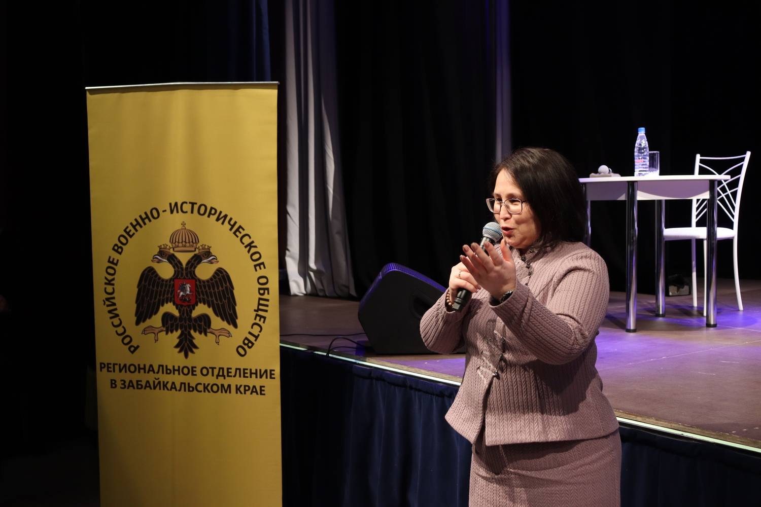 Председатель регионального отделения Российского военно-исторического общества в Забайкальском крае Татьяна Цымпилова отметила особую значимость диалога с молодежью: "Сегодня перед нами стоит важная задача – размышление о патриотизме, о его роли и месте в нашей жизни и в судьбе нашей страны. Патриотизм – это не просто глубокое чувство любви к родине, это основа, на которой строится здоровое общество, процветающее государство. Патриотизм начинается с уважения: уважения к истории своей страны, к её культуре, традициям и народу. Это чувство гордости за достижения нашей страны, за её героев, за тех, кто своим трудом и подвигами прославил её имя на весь мир. Но важно понимать, что патриотизм – это не только гордость за прошлое, но и ответственность за настоящее и будущее нашей Родины.