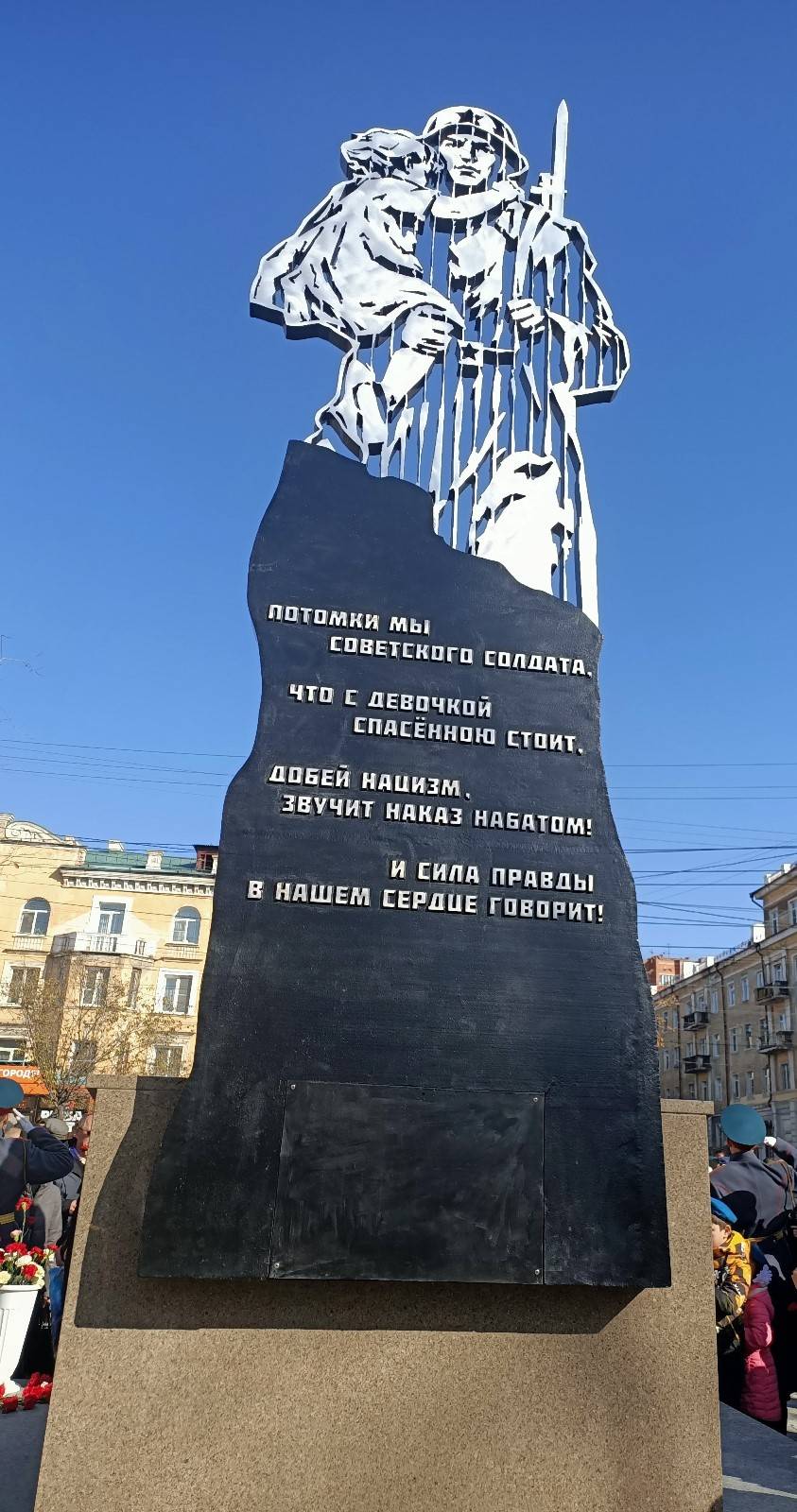 Поддерживать этих ребят, их родных и близких и всех тех, кому они дороги. Делать все для того, чтобы они со всем справились и победили. Благодарю всех, кто принимал участие в создании этого монумента и всех, кто сегодня принимает участие в его открытии. Особенно хочу обратиться к ребятам, вы наше будущее, мы в вас верим, имейте ввиду, что быть патриотом своей Родины это сложно и это не столько физически тяжело, сколько морально не легко, это не редко означает быть под давлением непонимающих людей, поэтому будьте смелыми, храните Родину, себя и дружбу между вами», – обратился к присутствующим Губернатор Забайкальского края Александр Осипов.