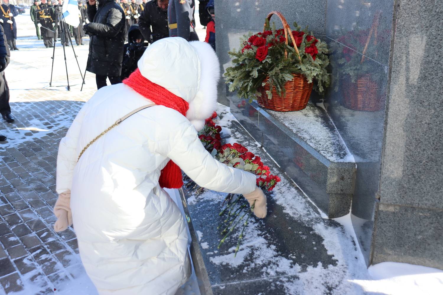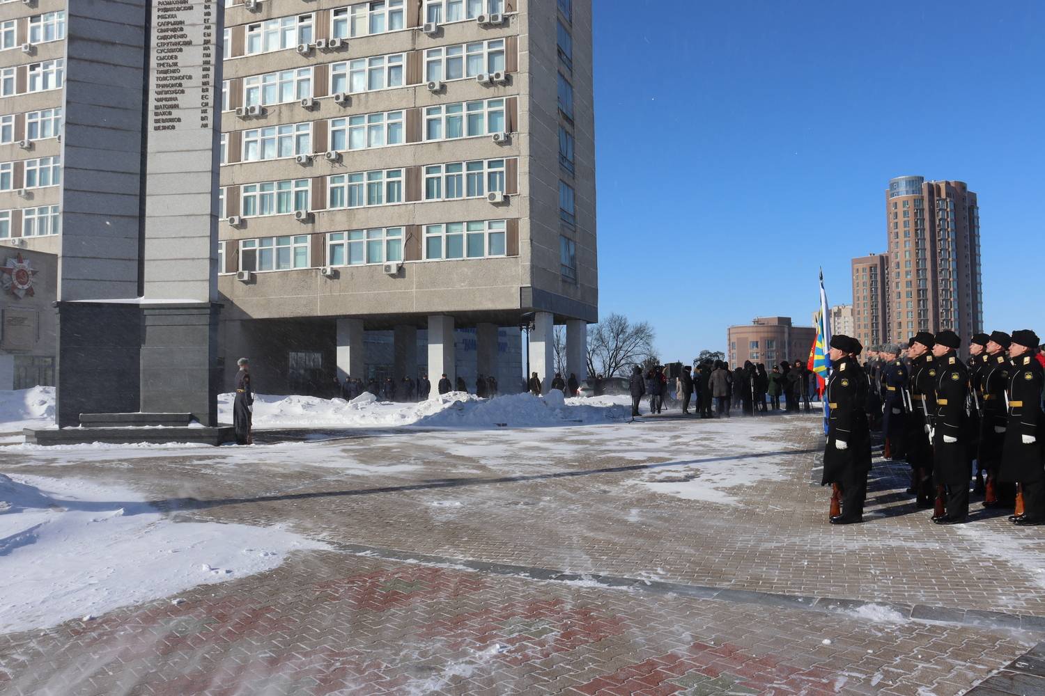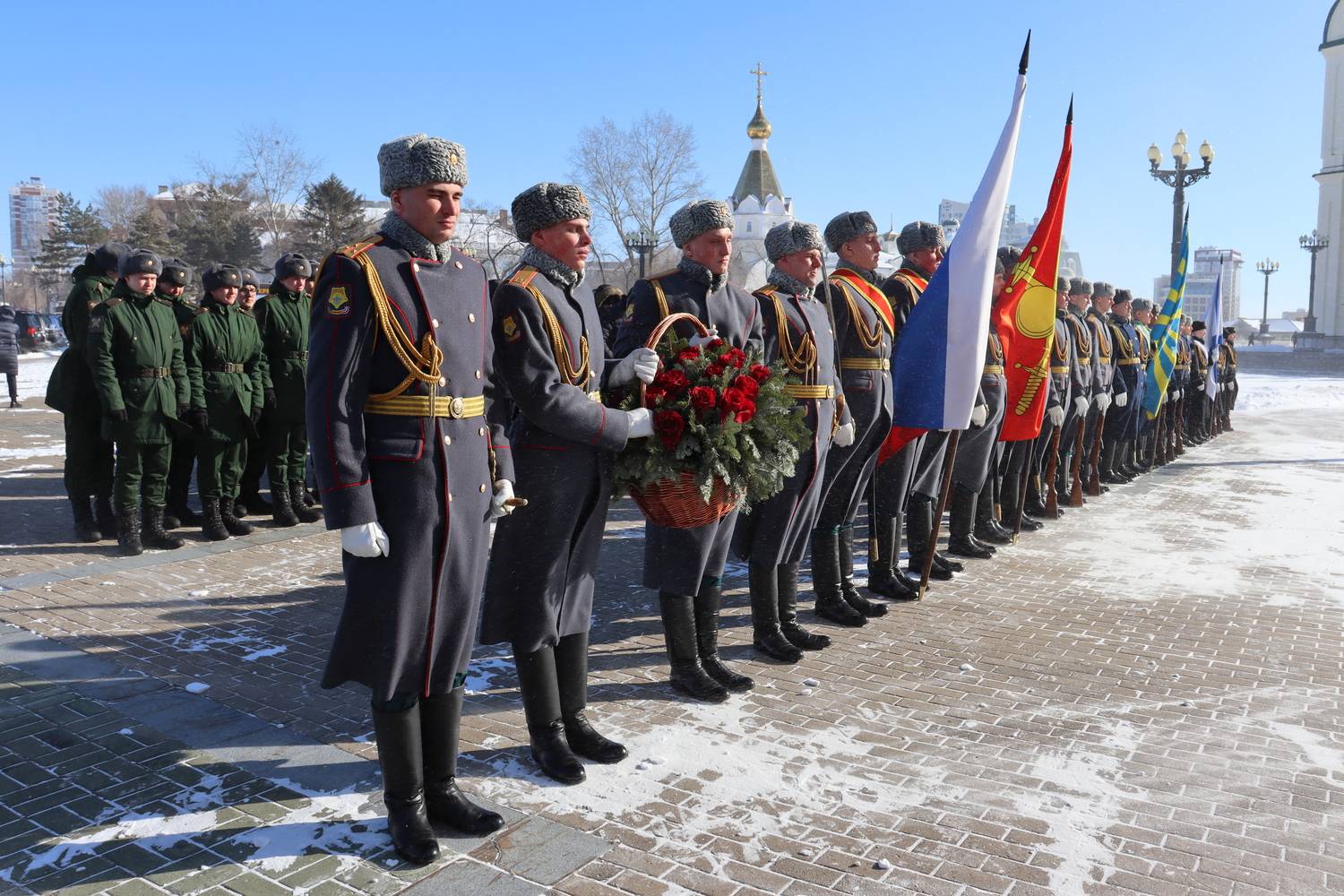 В рамках церемониальных мероприятий форума, 20 февраля состоялось торжественное возложение цветов на Площади Славы к Вечному огню и памятнику-мемориалу воинам, погибшим в вооруженных конфликтах и локальных войнах, а также церемония открытия имени Героя Российской Федерации - участника специальной военной операции В.В. Макарова на Обелиске Славы в г. Хабаровске.