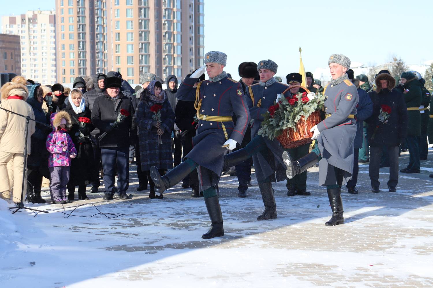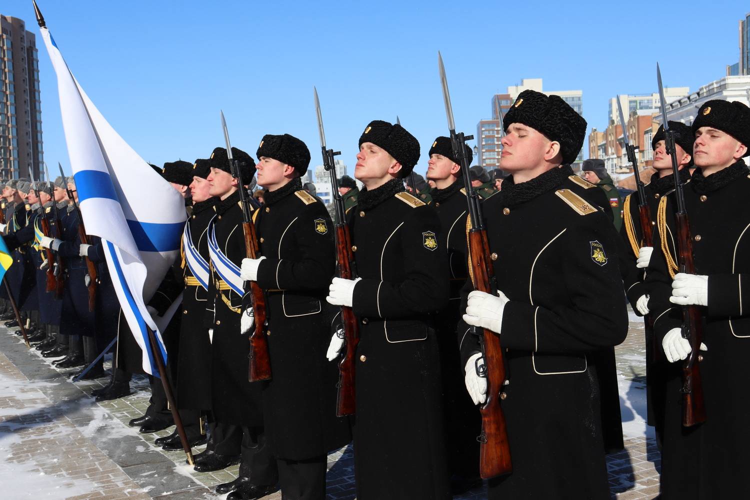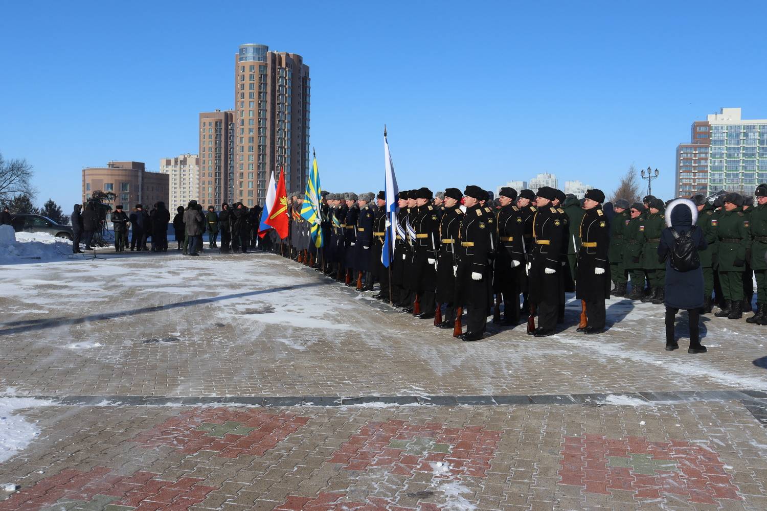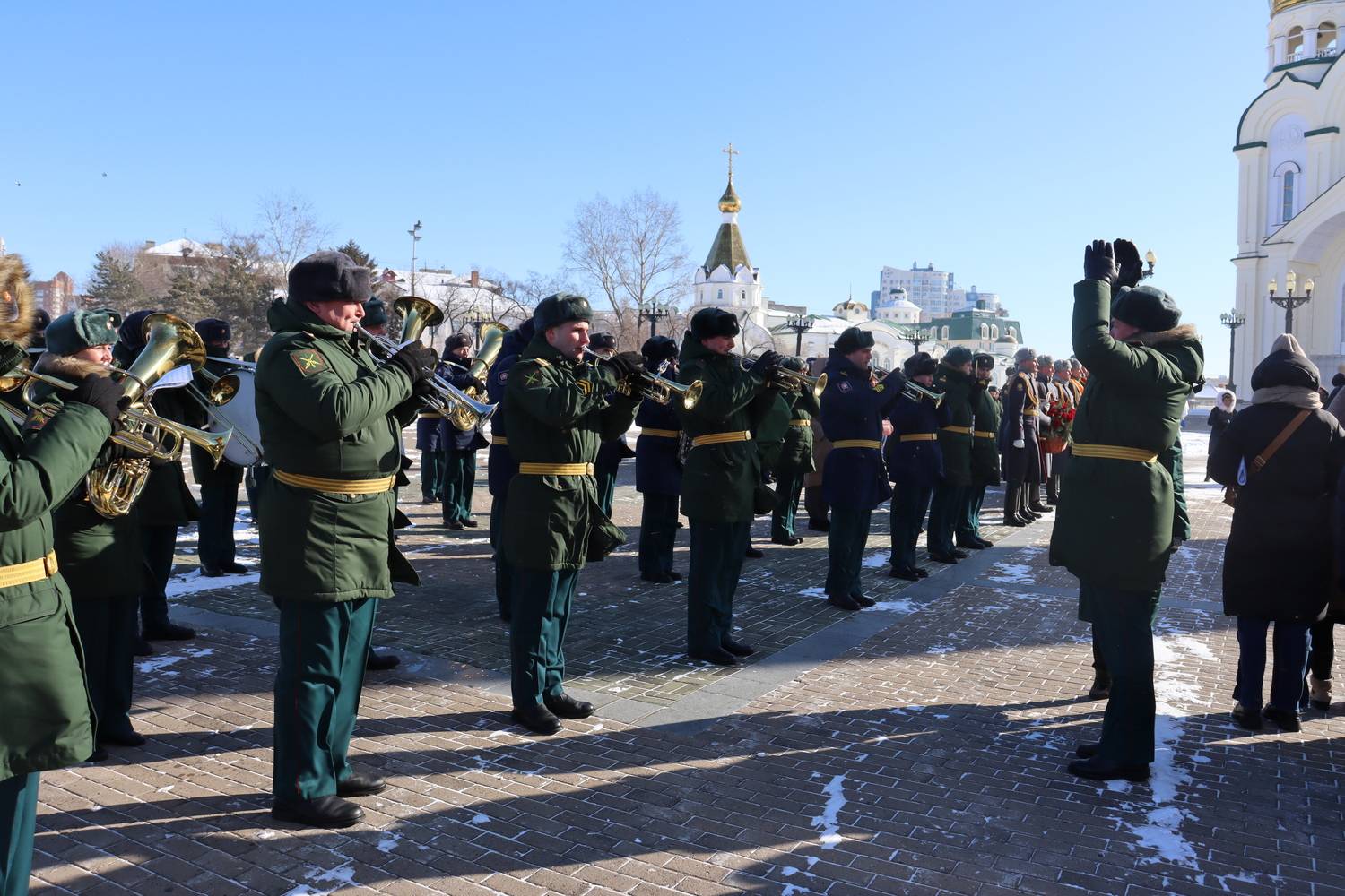 В рамках церемониальных мероприятий форума, 20 февраля состоялось торжественное возложение цветов на Площади Славы к Вечному огню и памятнику-мемориалу воинам, погибшим в вооруженных конфликтах и локальных войнах, а также церемония открытия имени Героя Российской Федерации - участника специальной военной операции В.В. Макарова на Обелиске Славы в г. Хабаровске.