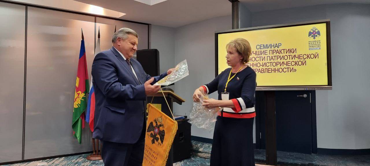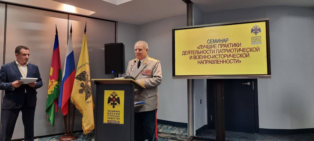 Заместитель Председателя Российского военно-исторического общества Николай Павлович Овсиенко в своей речи поблагодарил всех участников семинара и отметил необходимость дальнейшей активной работы отделений во всех регионах страны: «Успехи нашего общества – это успехи каждого из вас. Я благодарю всех вас за каждодневную просветительскую работу, призываю вести ежедневную историческую летопись нашей современности, отмечать ратные и боевые подвиги наших современников, что сейчас особенно важно. Мы должны понимать, что без прошлого – нет будущего. Много сделано, но еще больше нам сделать предстоит. Желаю вам плодотворной работы».
