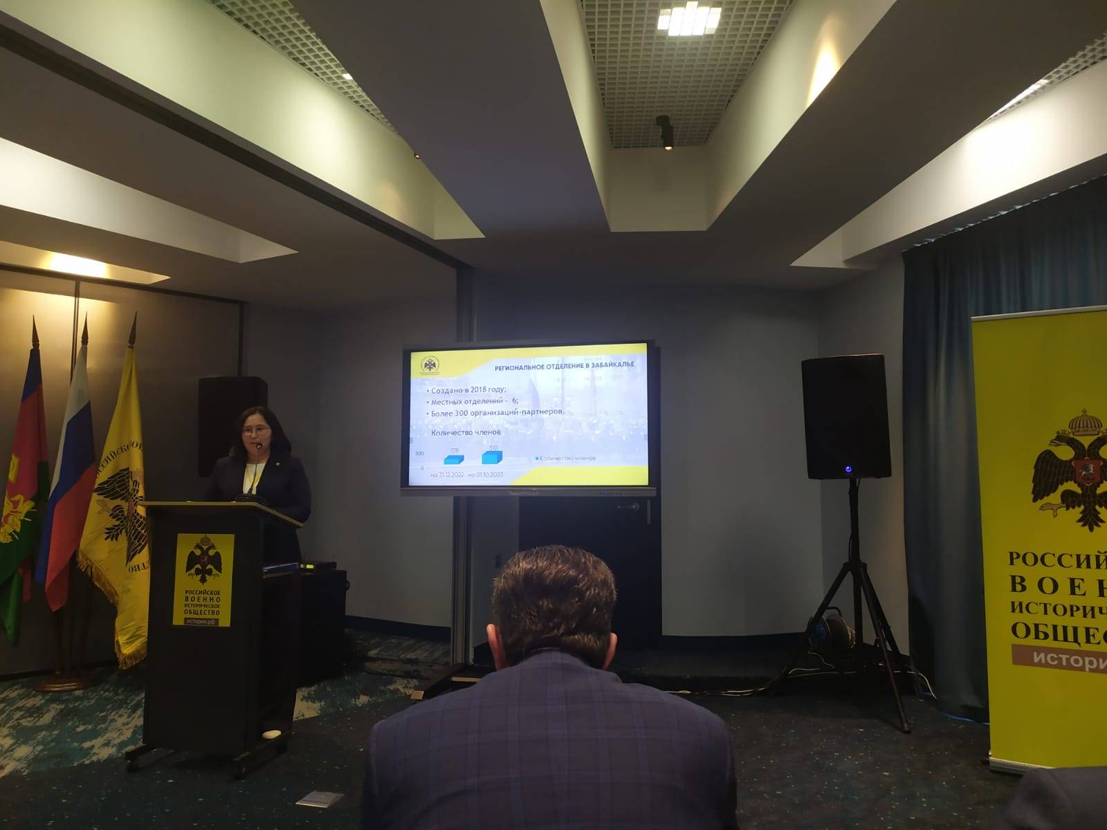 Председатель регионального отделения выступила на пленарной сессии с докладом «Участие регионального отделения РВИО в Забайкальском крае в грантовых программах и партнёрских проектах».