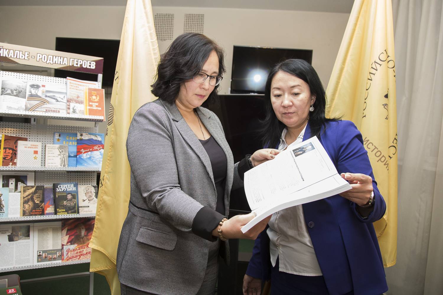 В краевой столице продолжились мероприятия в рамках регионального историко-патриотического марафона «ЗАБАЙКАЛЬЕ – РОДИНА ГЕРОЕВ». 15 октября состоялась рабочая встреча директора Департамента региональной политики Общероссийской общественно-государственной организации «Российское военно-историческое общество» Аяны Алексеевны Шойгу с активом регионального отделения РВИО в Забайкальском крае.