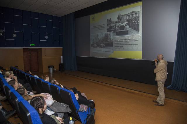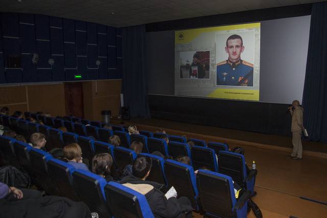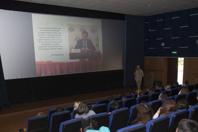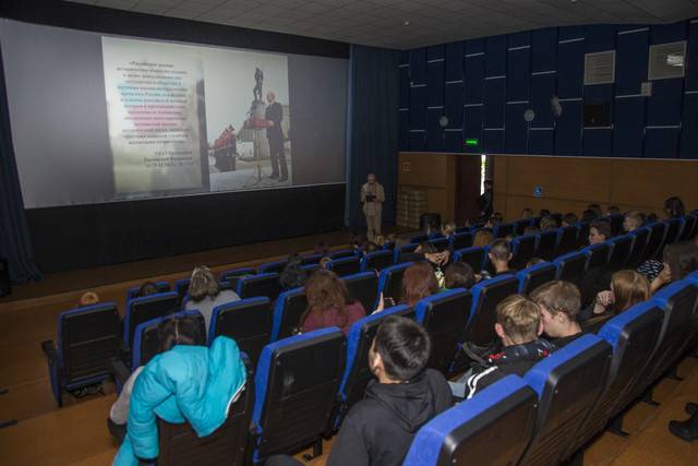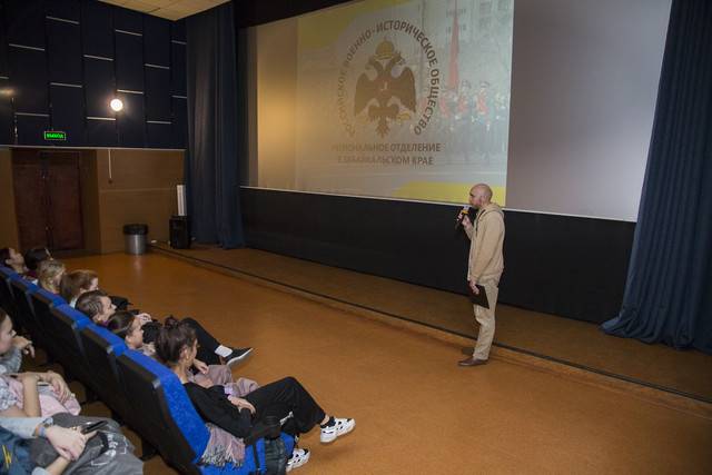 Перед демонстрацией фильма член регионального отделения Российского военно-исторического общества, сотрудник Забайкальского краеведческого музея Дмитрий Скажутин провел для зрителей лекцию на тему: «Забайкалье – родина героев». В ходе лекции собравшиеся ознакомиись с деятельностью регионального отделения, узнали о реализуемых обществом проектах, о славном историческом прошлом и настоящем родного края и о героях земляках.