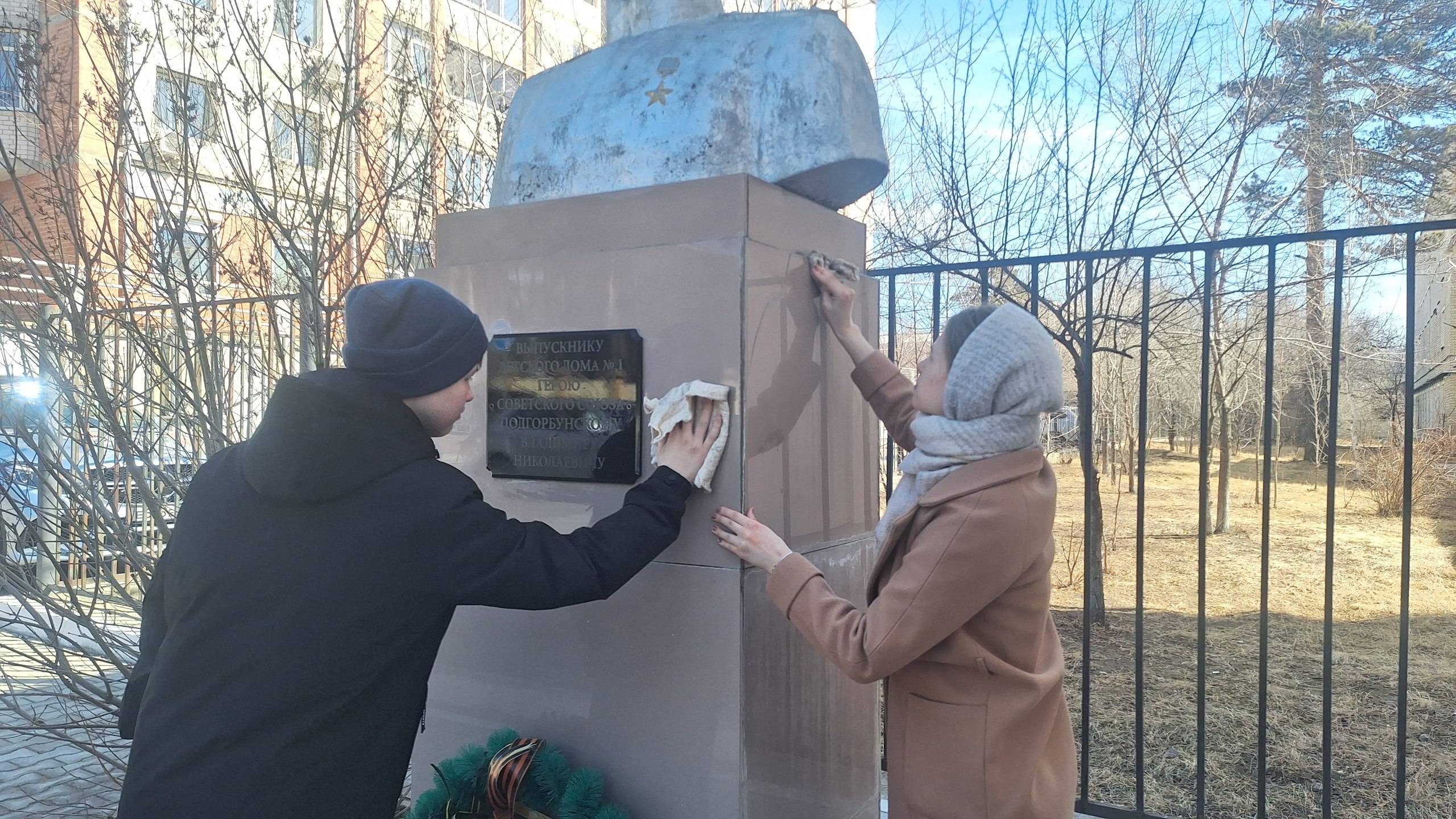 В преддверии празднования Дня Победы во всех школах города Читы прошли мероприятия по уборке памятных досок и мемориальных объектов, расположенных на территориях школ