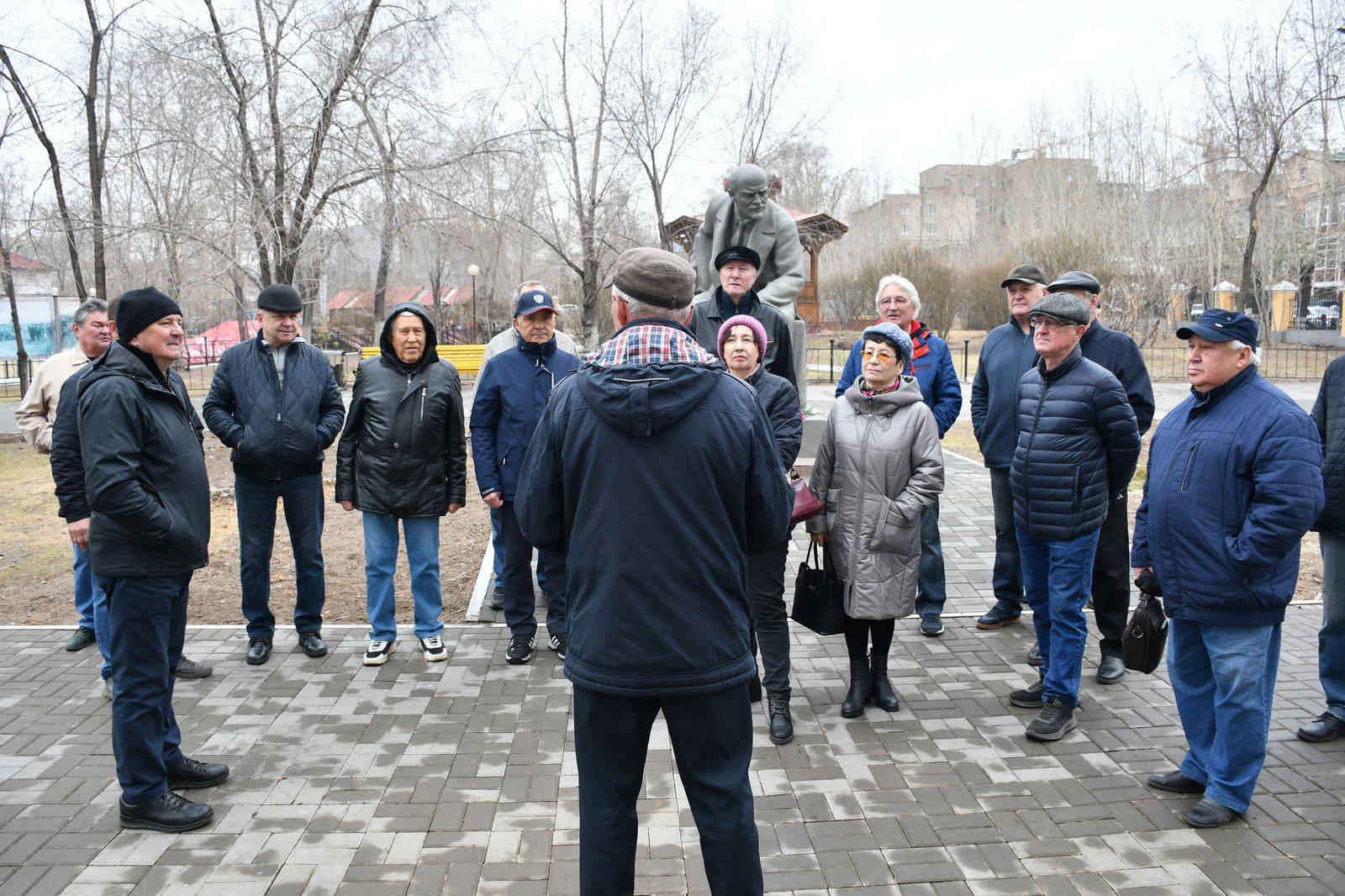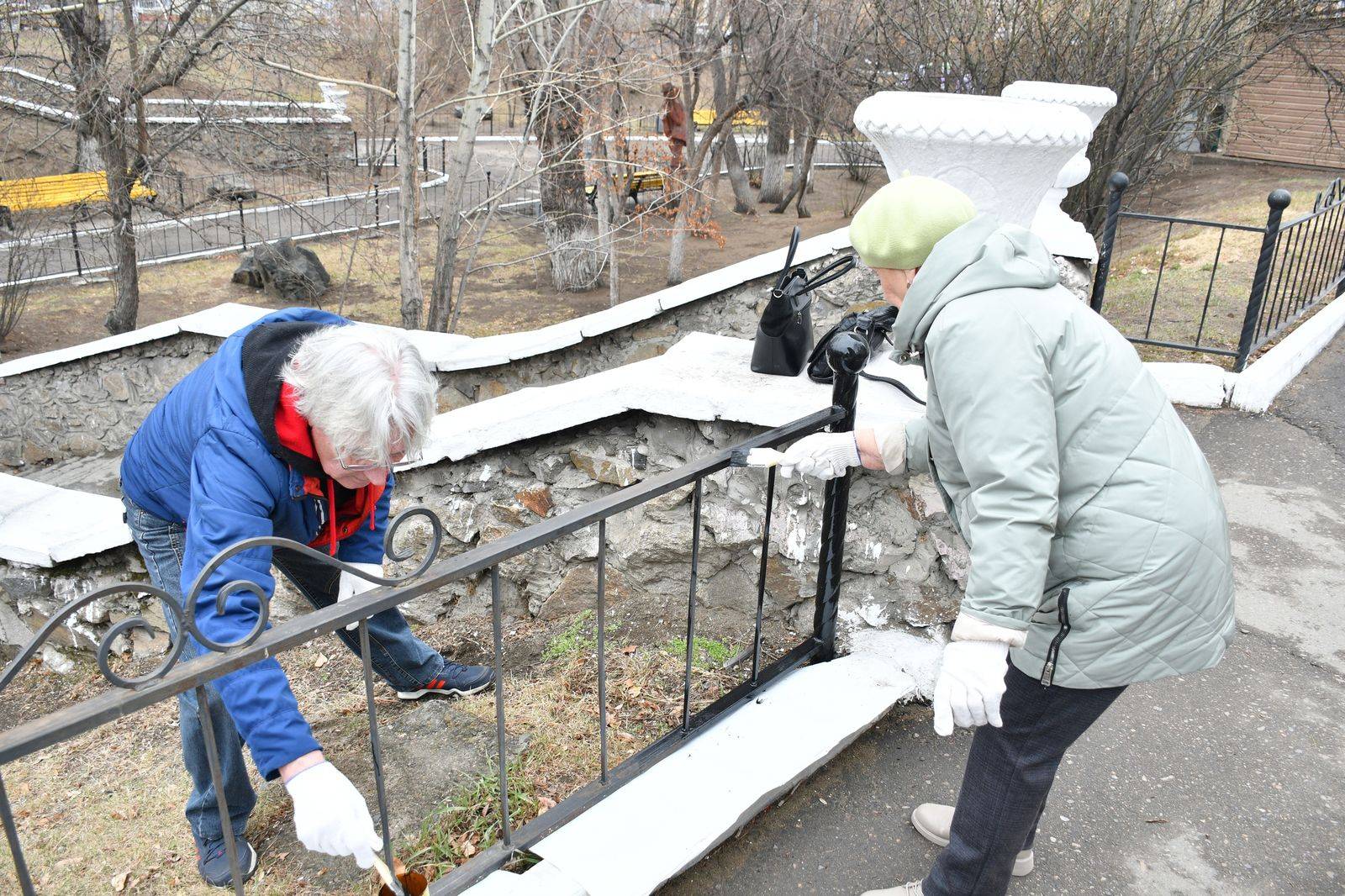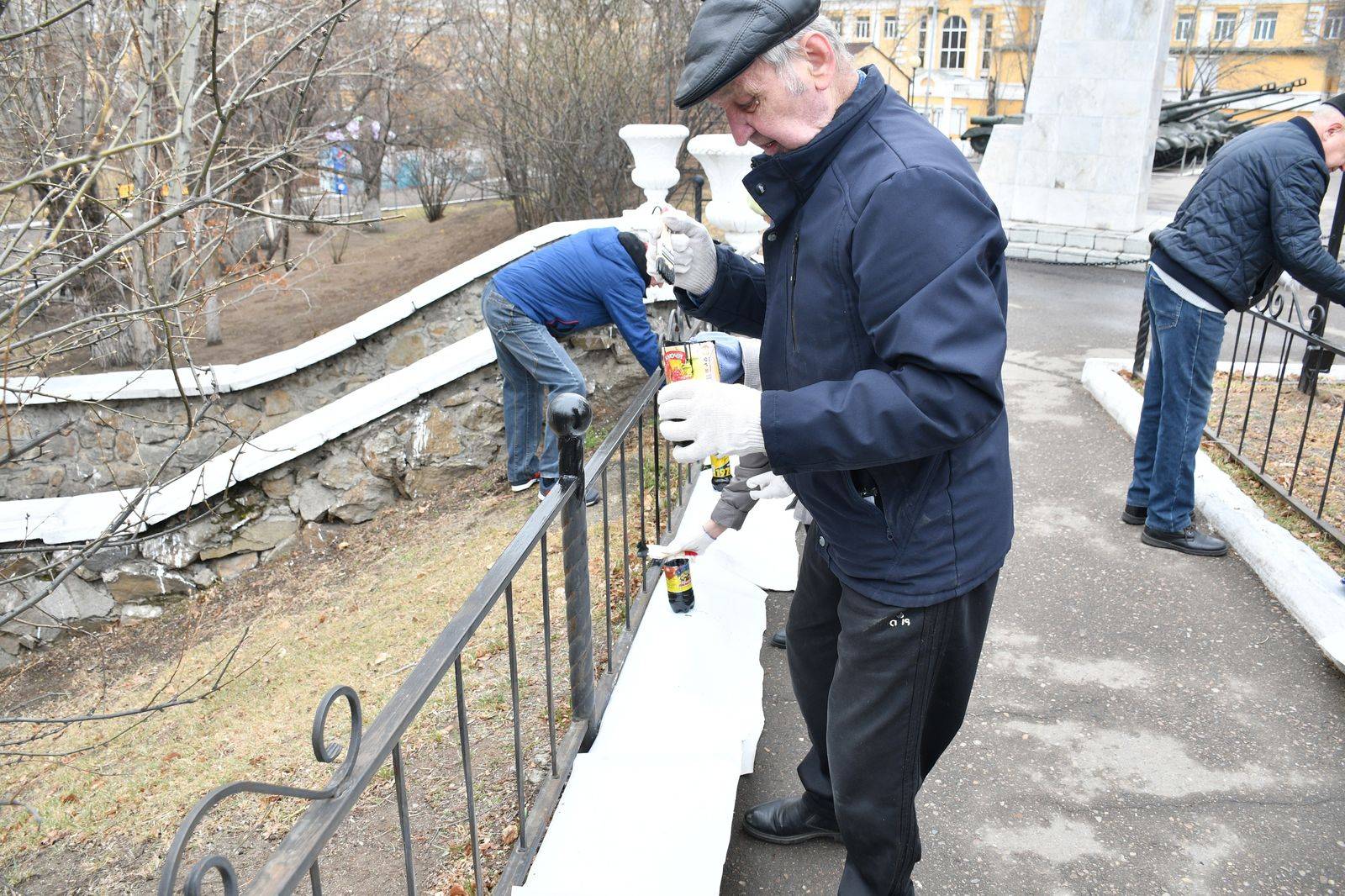 В честь дня рождения Владимира Ильича Ленина в центральном парке столицы Забайкалья ветераны разных отраслей во главе с членом Попечительского совета регионального отделения РВИО, директором ВИЦ «Дом офицеров» Сергеем Жеребцовым провели субботник – очистили территорию, окрасили бордюры и ограждения возле памятника Ленину.