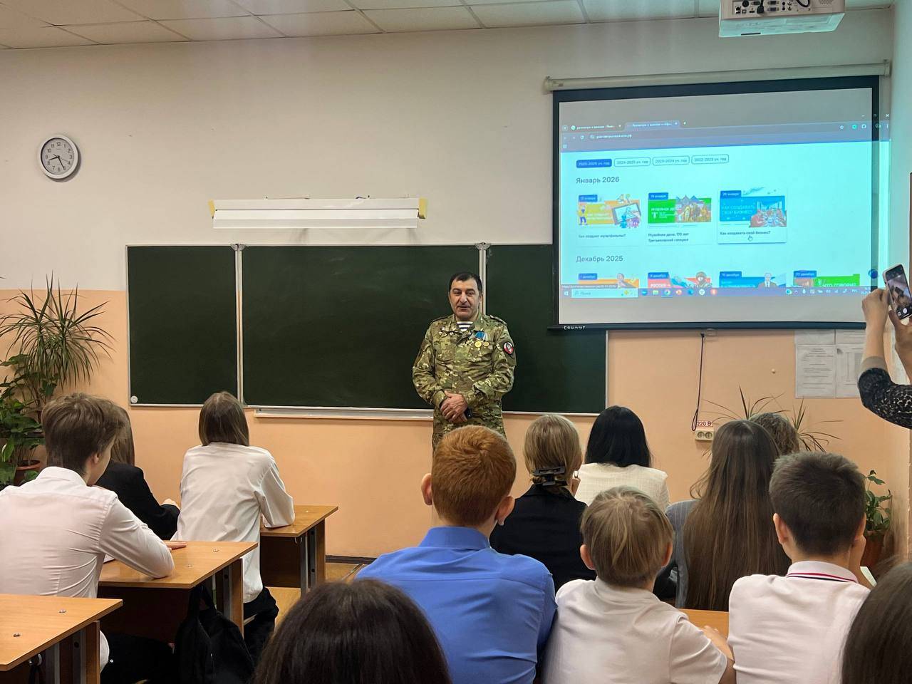После официальной части линейки прошёл урок Мужества для классов российского военно-исторических общества школы. Учащиеся услышали личные рассказы гостей о судьбе героев-защитников, получили уникальную возможность задать интересующие вопросы и почувствовать живое дыхание истории.