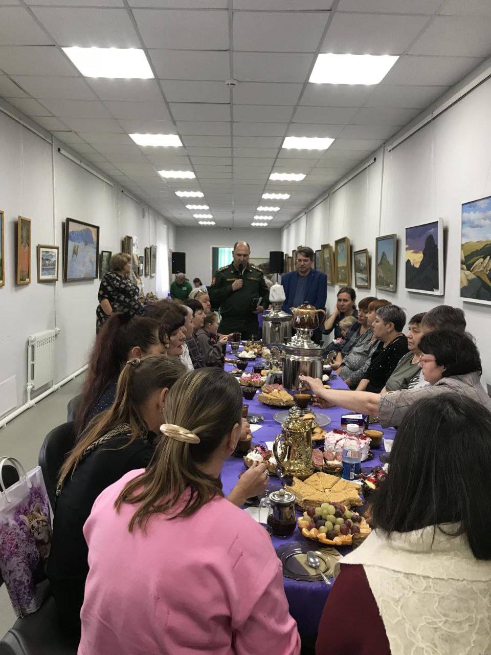 Работники музея организовали для гостей чаепитие. Ароматные чаи из старых дровяных самоваров, изготовленная с любовью выпечка мастериц кафе «Сказка» из поселка Шерловая Гора, создавали атмосферу уюта и тепла. За круглым столом и чашкой чая , присутствующие могли поделиться своими воспоминаниями и рассказами о своих родных, отдавших жизнь за Родину. Эти трогательные истории о любви, гордости и утрате вновь вызвали слёзы на глазах, но также укрепили ощущение единства и поддержки среди всех собравшихся.