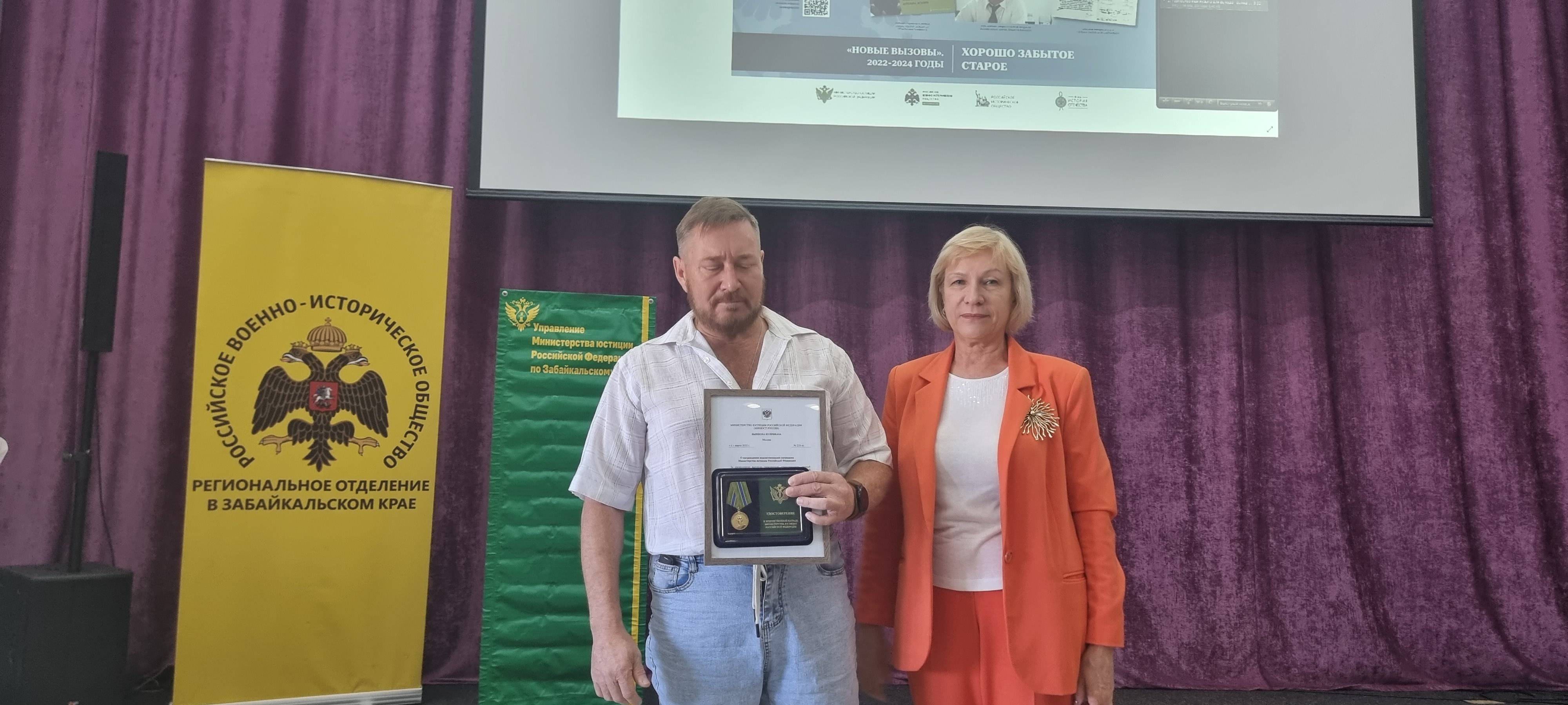 В завершении презентации адвокатам, которые проходят службу на СВО были вручены ведомственные награды Минюста России, а депутат Законодательного собрания Забайкальского края, врач-хирург, волонтер Донбасса прочитал в подарок свои стихи.
