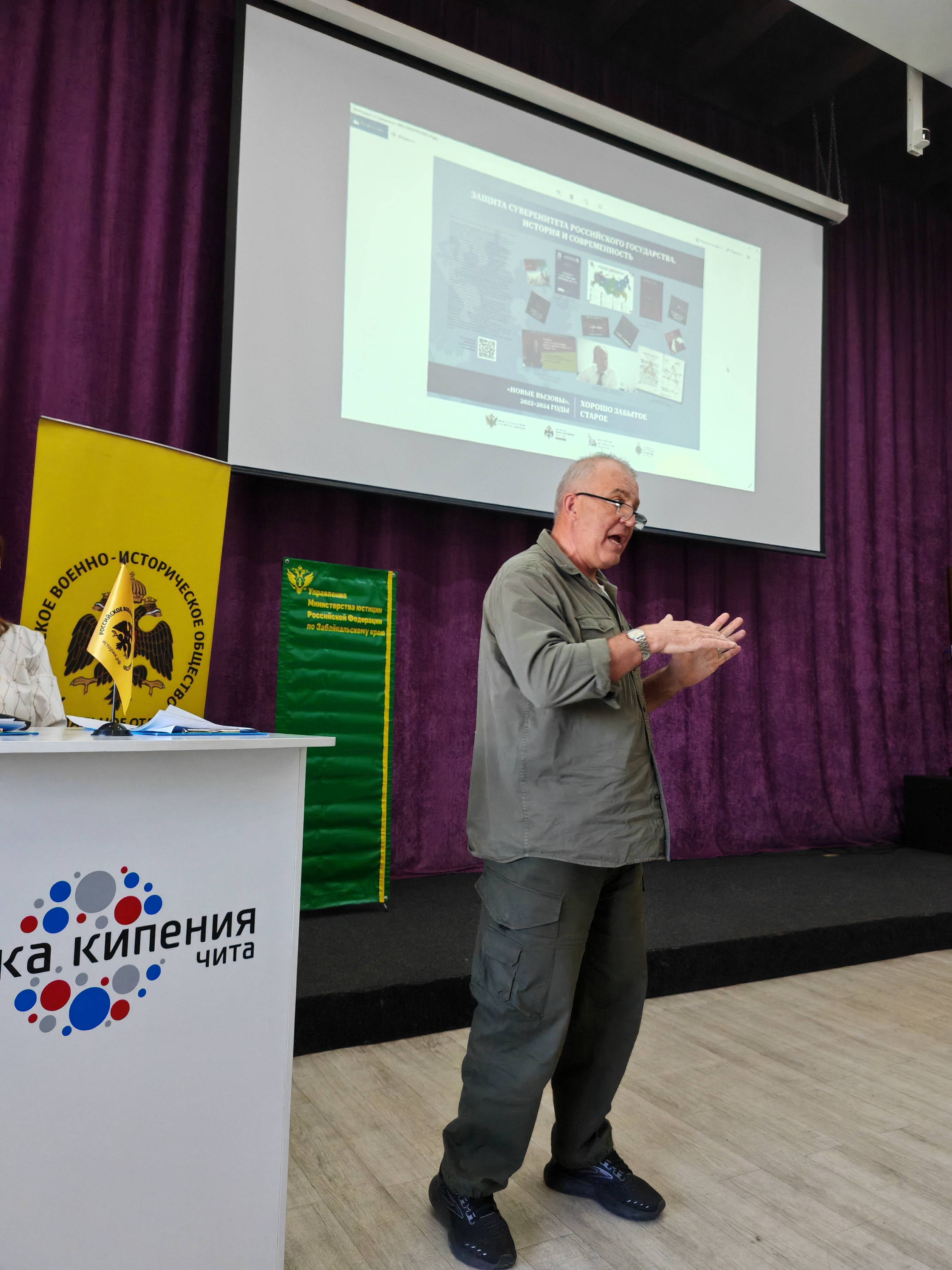 С большим интересом рассказ Анны Волочаевой руководителя научно-учебной лаборатории «Энциклопедия Забайкалья», кандидата исторических наук об истории становления нашего государства, как веками наши предки отстаивали свою независимость и продолжают это делать сегодня, вместе с забайкальскими коллегами слушали, приехавшие в Читу члены Хабаровского отделения РВИО во главе с исполнительным директором Сергеем Коваленко, который в своем выступлении сказал: «что только изучая уроки прошлого, мы сможем достойно ответить на сегодняшние вызовы и сохранить суверенитет, независимость и историческую судьбу нашего государства».