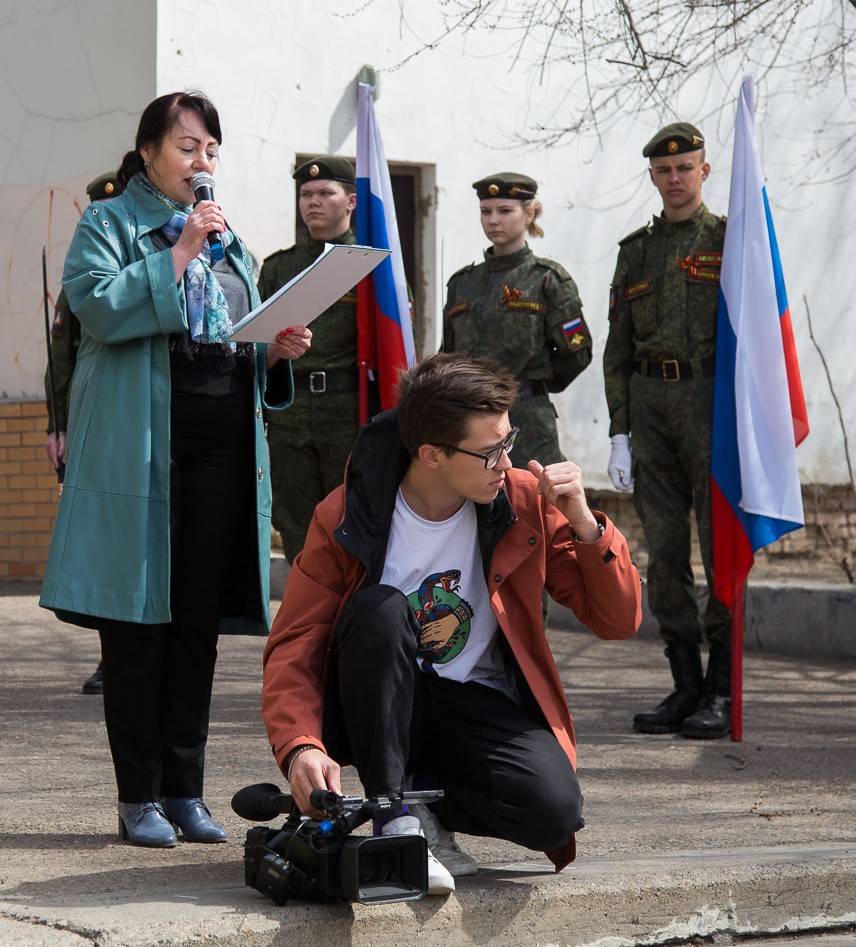 Далее к собравшейся публике обратился известный журналист, общественный деятель, кандидат исторических наук, член Попечительского совета регионального отделения РВИО А.О. Баринов: «Уважаемые земляки, читинцы, забайкальцы! Мы собрались в канун Победы. Я рад участвовать в открытии замечательной выставки, которую подготовили наши молодые ребята, сделав репродукции с плакатов Великой Отечественной войны.