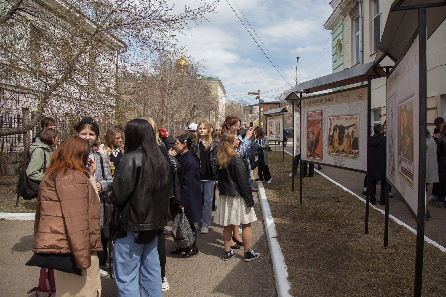 В публичном городском пространстве жителям краевой столицы представляются репродукции советского агитационного плаката времен Великой Отечественной войны, выполненные студентами учебного заведения.