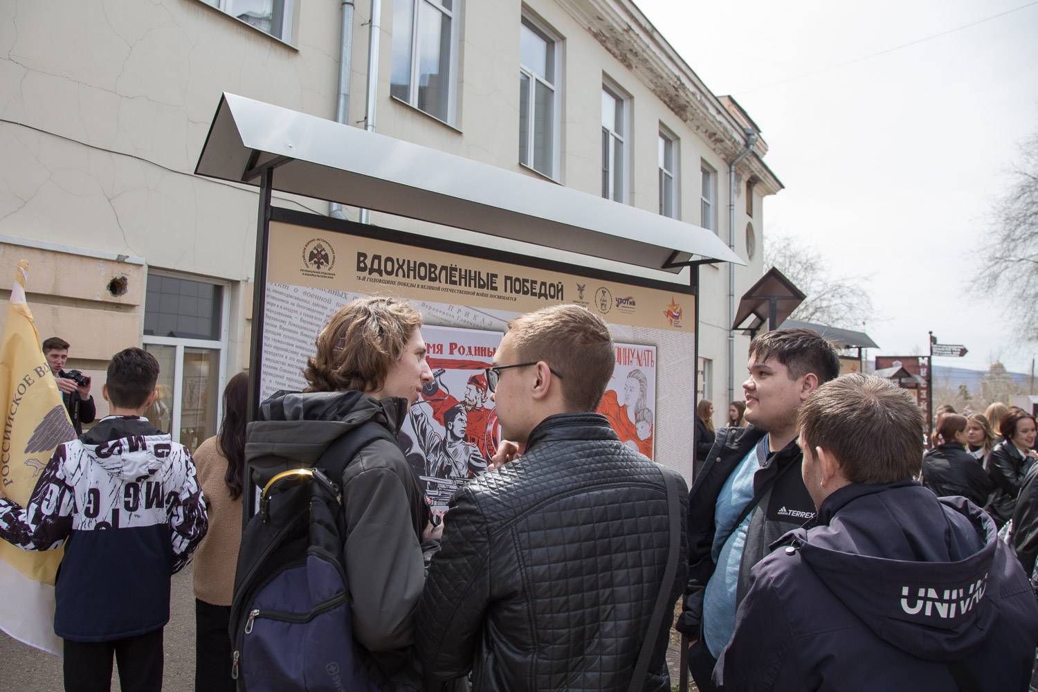 В преддверии празднования Дня Великой Победы в городском «Музейном квартале», 5 мая, прошло торжественное открытие выставочного проекта «Вдохновленные победой», подготовленного региональным отделением Российского военно-исторического общества в Забайкальском крае и Читинским техникумом отраслевых технологий и бизнеса.