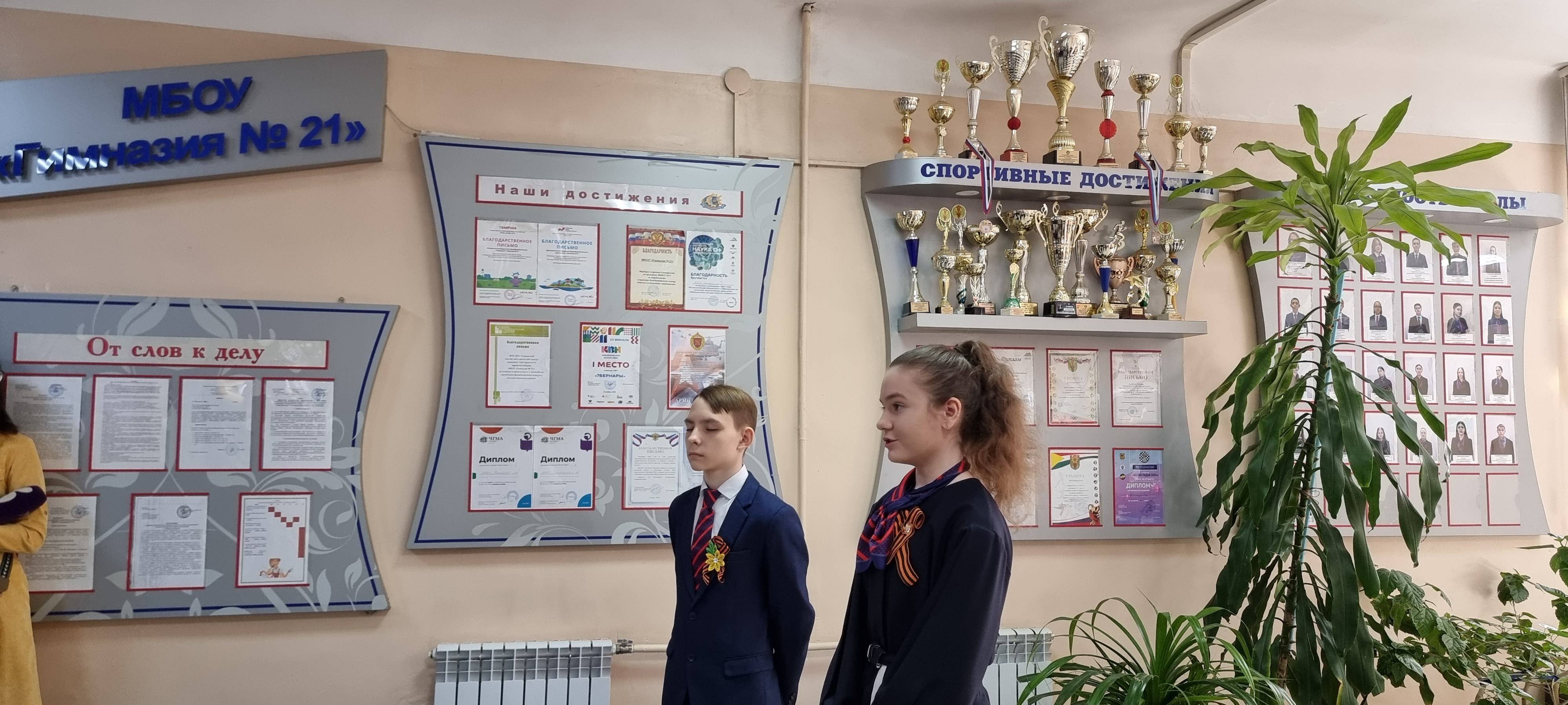 В стенах гимназии ребята провели экскурсию по экспозициям, посвященным Великой Отечественной войне, которые сами подготовили к празднику, показали музей, посвященный Владимиру Подгорбунскому. А на уроке мужества уже из уст родных Героя узнали новые факты из биографии Подгорбунского.