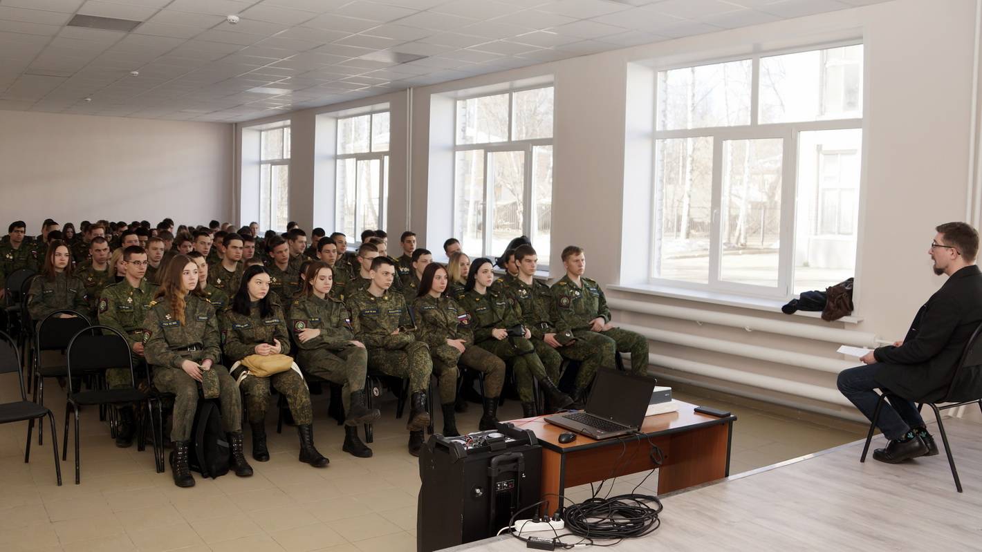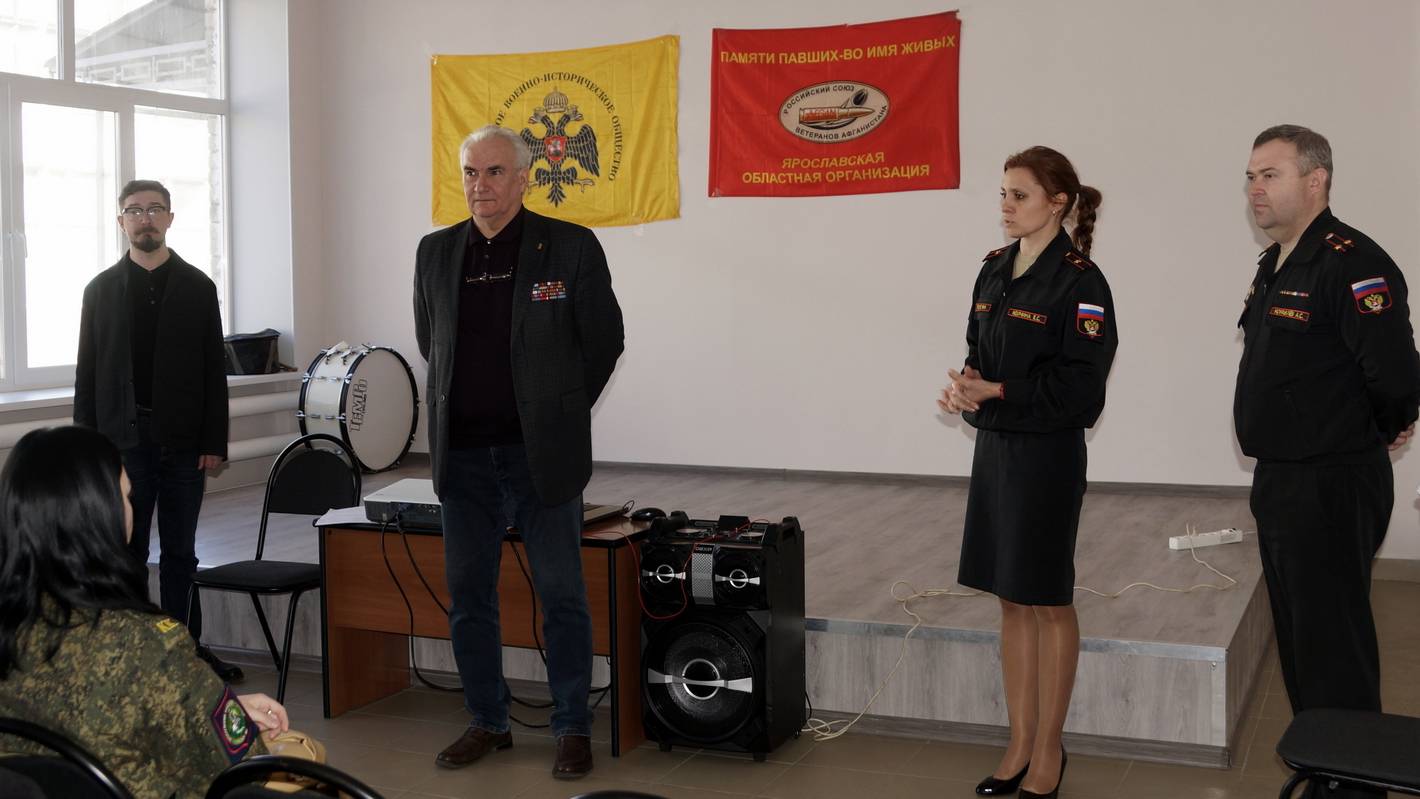 Акция прошла 19 апреля по всей стране в 12.00. К учащимся Ярославского кадетского колледжа пришли члены Совета Ярославского регионального отделения российского военно-исторического общества Михаил Кербиков и Игорь Ямщиков.