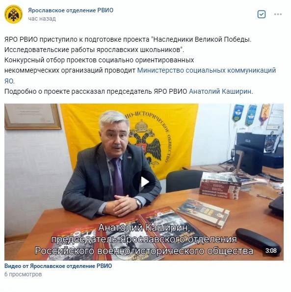 Подробно о проекте в социальных сетях рассказал председатель ЯРО РВИО Анатолий Каширин.
