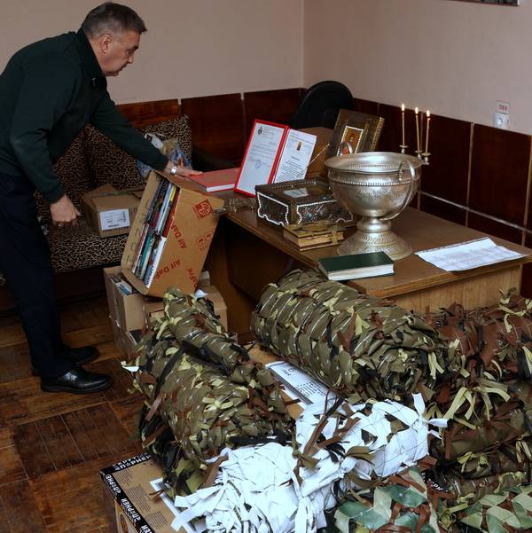 "Цель нашего сегодняшнего визита - передача ковчега с мощами Святого Апостола Варфоломея. - прокомментировал Анатолий Иванович Лисицын. - Размеры изготовленного ковчега позволяют легко переносить его, что делает возможным совершение богослужений в походных условиях. Кроме того мы привезли для личного состава полка, с первых дней находящегося на СВО, маскировочные сети, наборы продуктов, которые изготавливают ярославские женщины-волонтеры "Вкусняшки от девчат", книги из моей личной библиотеки, поздравительные письма нашим бойцам на передовой".
