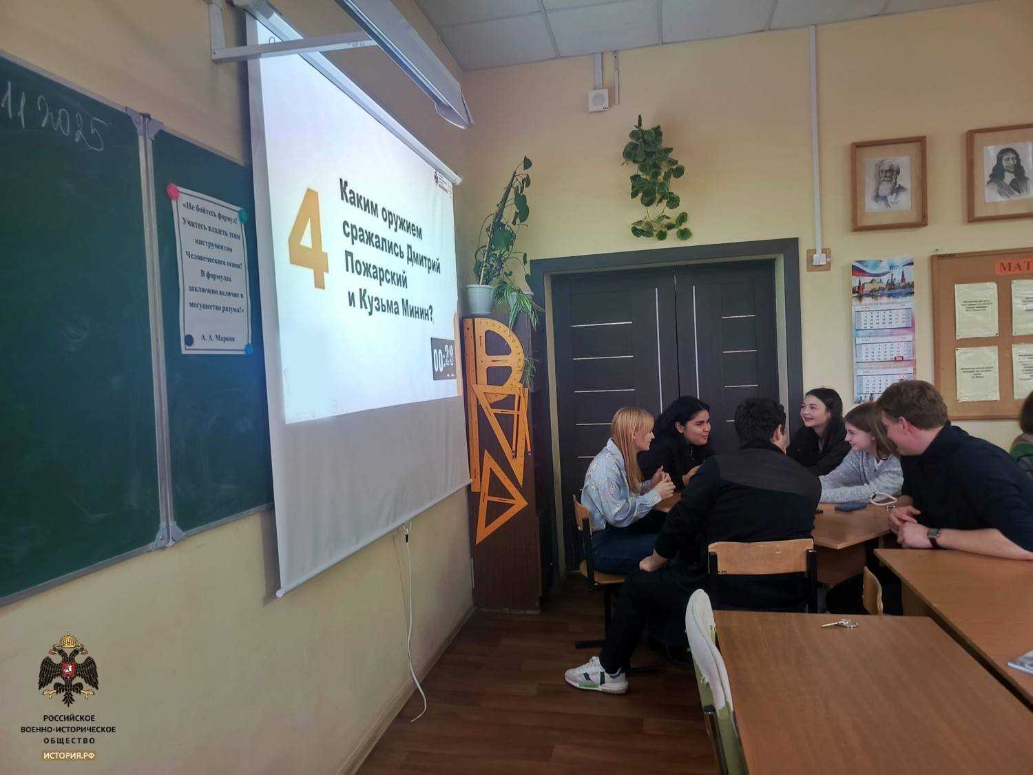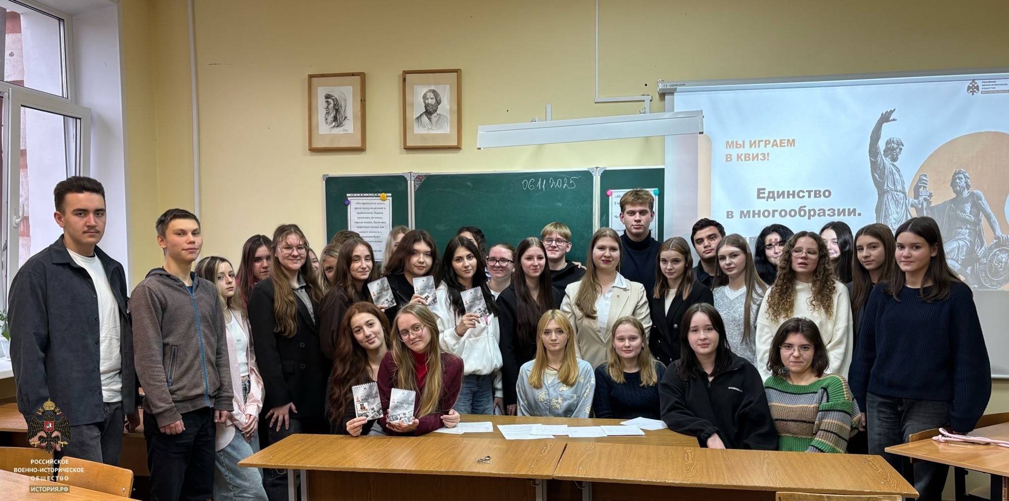 Актив ЯРО РВИО организовал исторический квиз, посвящённый теме народного единства «Единство в многообразии. Сильные духом, единые в сердце», который провела куратор департамента региональной политики РВИО Елизавета Кропина. Для студентов юридичекого факультета 1 и 2 курсов Университетского колледжа ЯрГУ им. П.Г.Демидова. Студенты групп: ЮР-10КО, ЮР-11КО, ЮР-12КО, ЮР-20КО, ЮР-21КО были очень активны, с энтузиазмом включались в работу, давали множество правильных ответов и расширяли свои знания и кругозор.