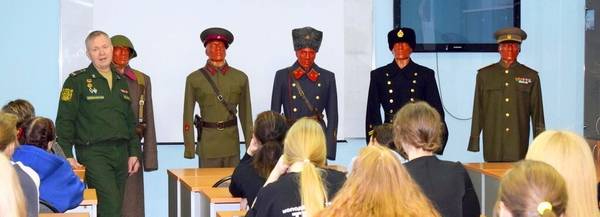 Студенты учились «читать» орденские колодки, узнали об интересных фактах и легендах, связанных с обмундированием советских воинов, познакомились с историей возвращения в армию погон и офицерских званий.