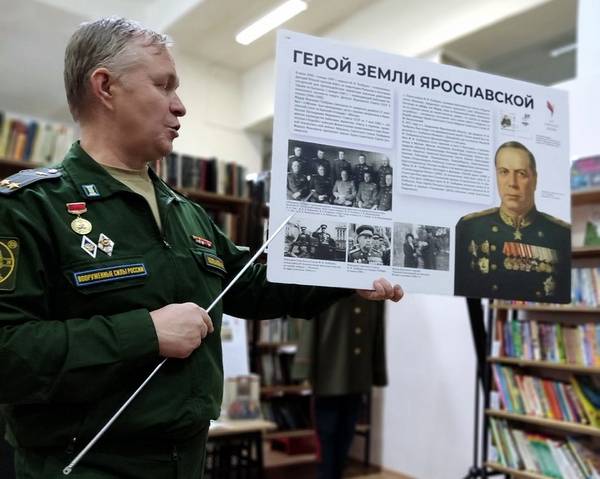 20 февраля студентам Ярославского колледжа культуры, ветеранам Фрунзенского района города представлена передвижная выставка «Герой земли Ярославской. Федор Иванович Толбухин». Автор выставки, Федор Николаевич Колпаков, не только возглавил историческую секцию конференции, но и провел час истории «Символы Победы» - для студентов колледжа и читателей библиотеки-филиала №12 им. А.П. Чехова. Работа выставки была приурочена Дню и Году защитника Отечества, 80-летию Великой Победы.