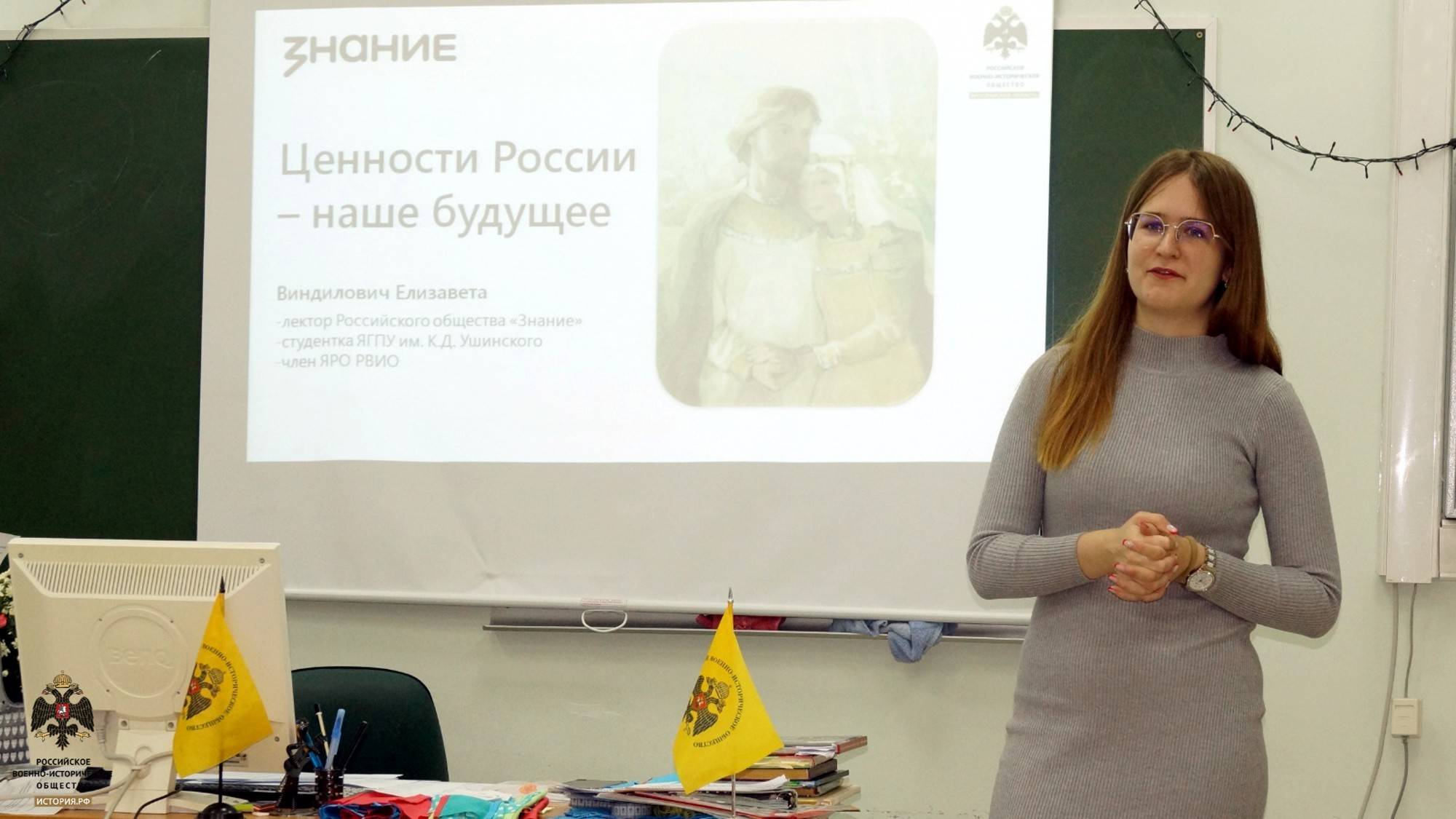 В ходе лекции, организованной для студентов Ярославского колледжа сервиса и дизайна, член ЯРО РВИО, лектор Российского общества «Знание» Елизавета Виндилович рассказала факты из истории государственных праздников России, вместе с участниками выдвинули предложения по созданию нового праздника, который будет объединять российский народ.