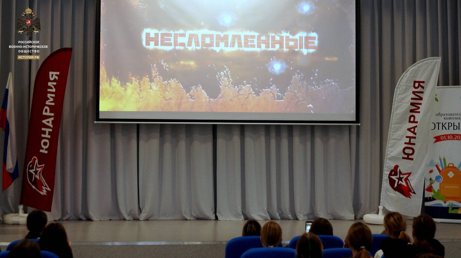 В рамках выездного киноклуба «Мобильного дома Юнармии» состоялся показ документального фильма "НЕСЛОМЛЕННЫЕ" о ветеранах трёх поколений и встреча с героями фильма – участниками боевых действий в Афганистане, на Северном Кавказе и СВО. Ребята услышали их рассказы о службе и боевом опыте.