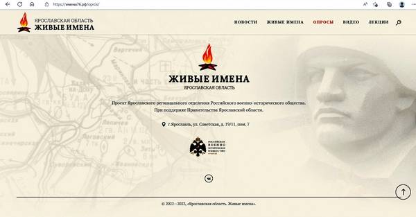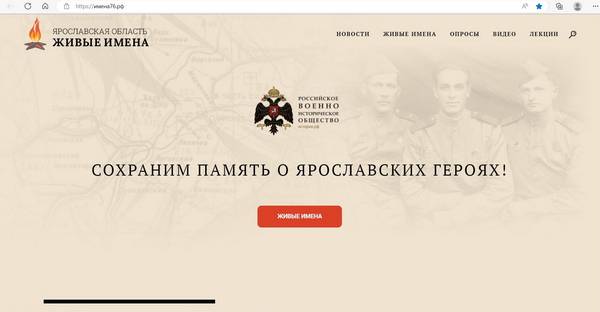 Начал работать сайт ЯРО РВИО "Ярославская область. Живые имена"