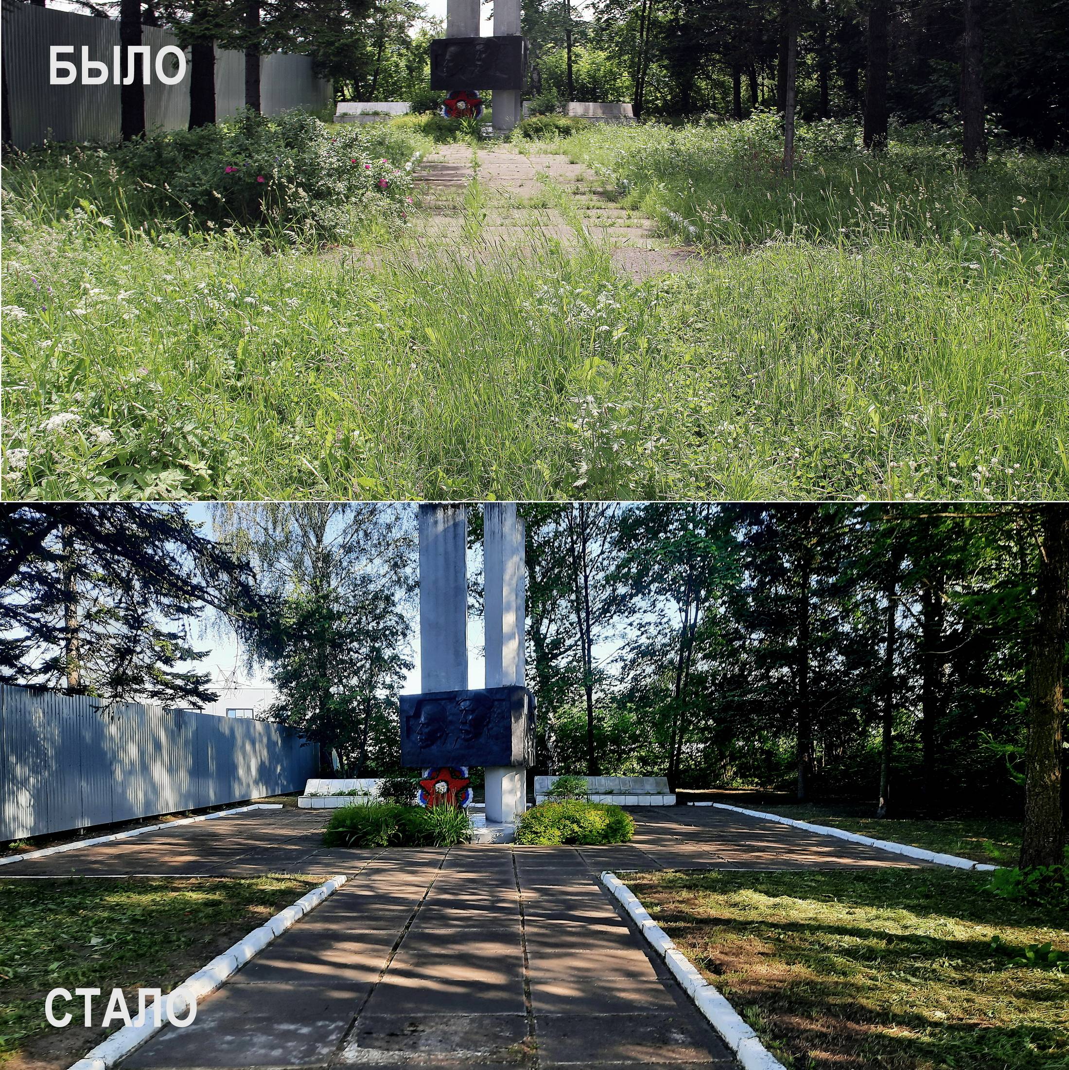 "Монумент погибшим на войне рабочим завода синтетического каучука был построен рабочими в 1975 году. После ликвидации предприятия в начале 2000-х он был заброшен. - прокомментировал член Совета ЯРО РВИО Игорь Ямщиков. - В 2014 году мы впервые начали проводить субботники по благоустройству мемориала. Ежегодно мы приходим сюда в разном составе в преддверии Дня Победы и Дня памяти и скорби."