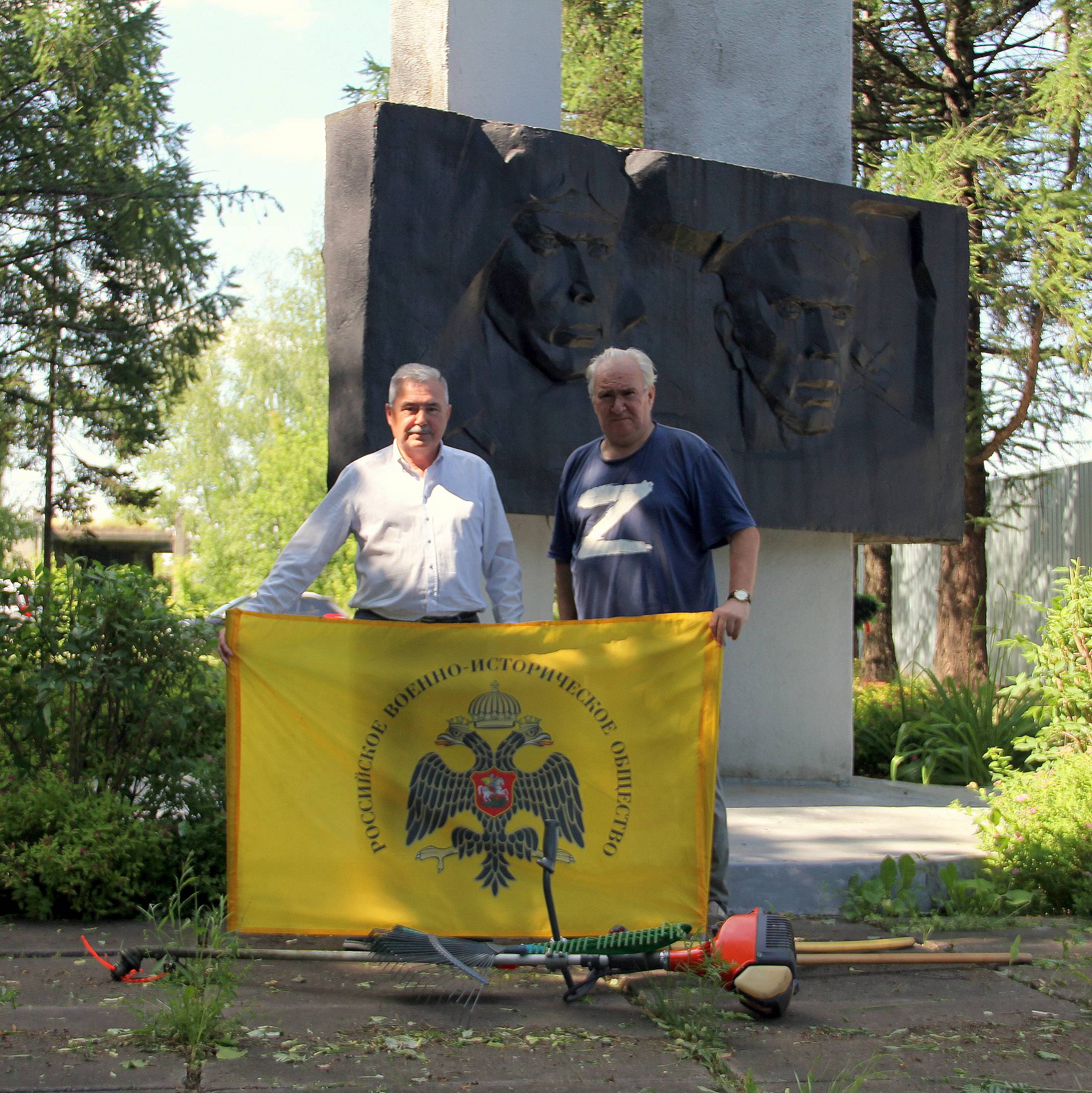 Накануне Дня памяти и скорби слены Совета ЯРО РВИО провели благоустройство территории у памятника погибшим на войне 111 работникам Ярославского завода синтетического каучука.
