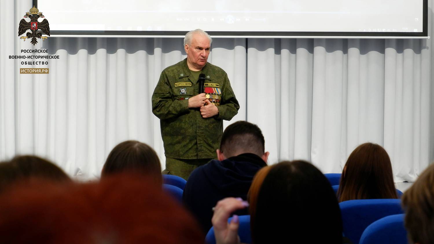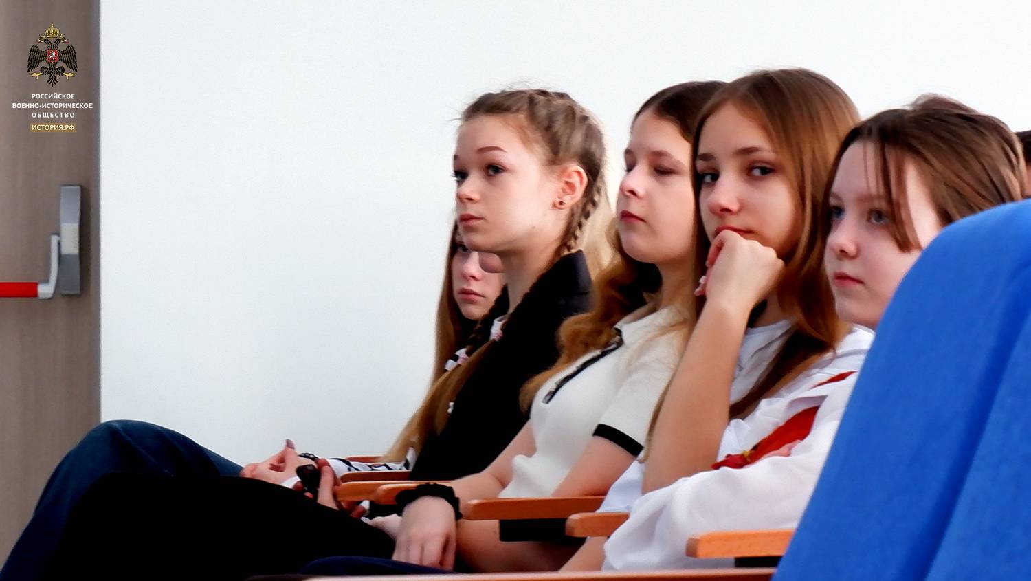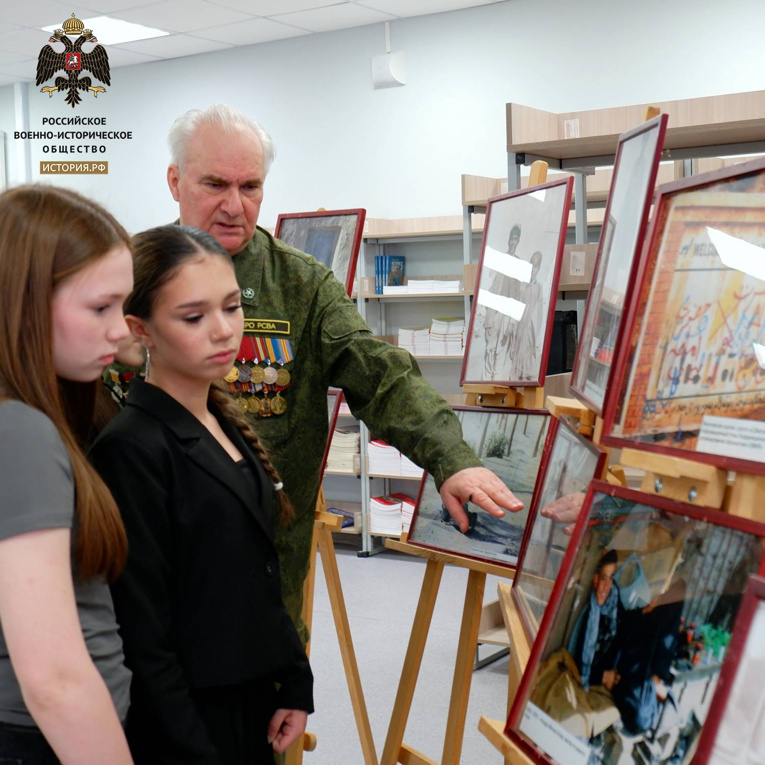 После открытия выставки Игорь Алексеевич провёл со старшекласснимками Урок Мужества, на котором ребята посмотрели фильм "Время выбрало нас", подготовленный учащимися ярославской школы № 15. Экспертами и консультантами фильма, подготовленного в 2023 году, стали активисты ЯРО РВИО.