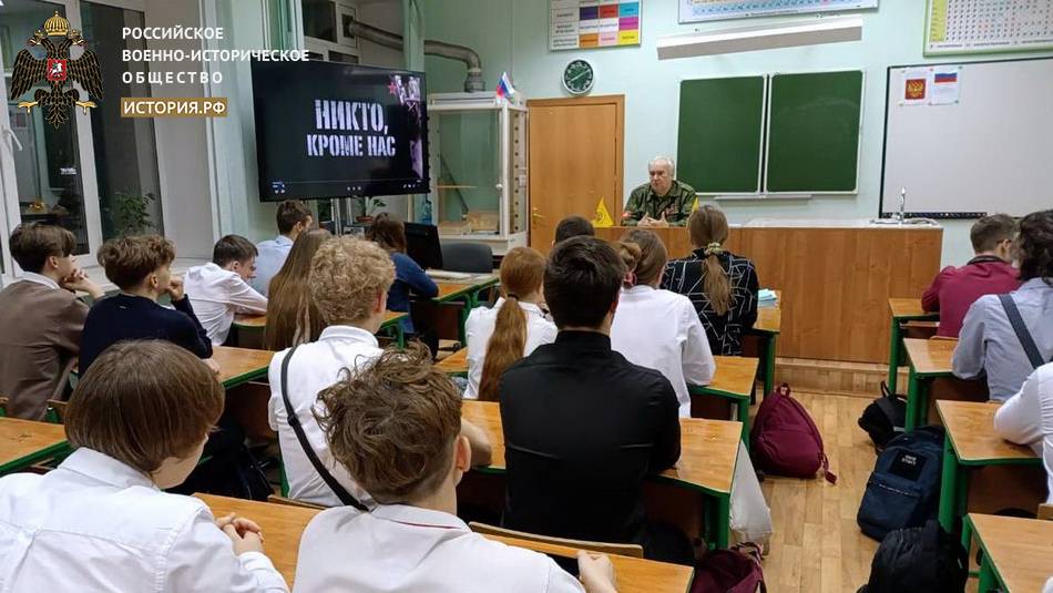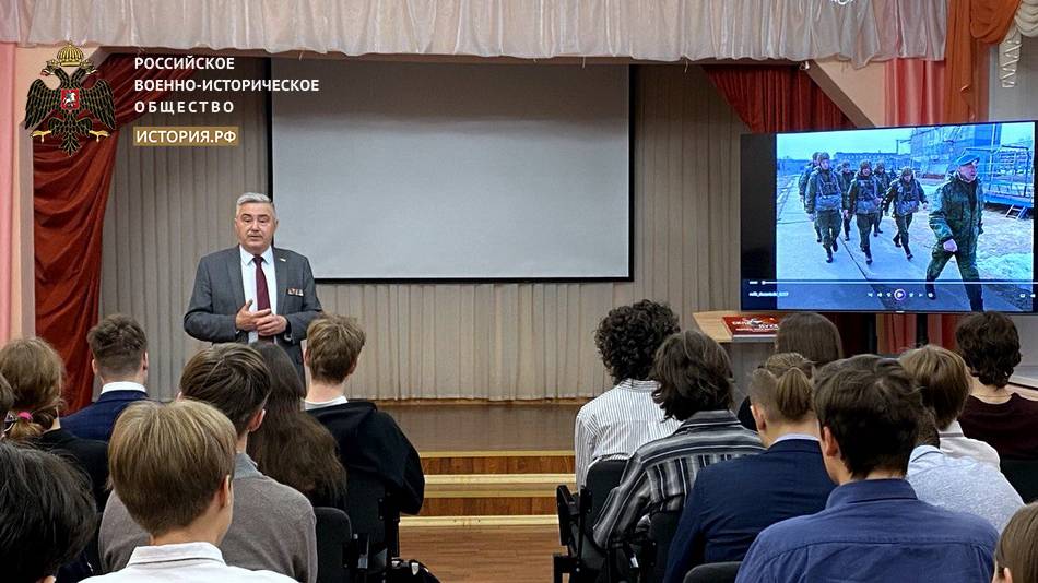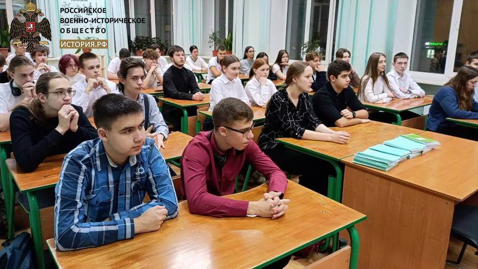 Школа № 49, входящая в Центр образования №1 "Лидер", в рамках проведения традиционных встреч "Разговоры о важном" собрала в двух аудиториях всех старшеклассников 9-11 классов. Председатель ЯРО РВИО Анатолий Каширин и председатель Совета ЯРО РВИО Игорь Ямщиков рассказали ребятам об истории этого праздника, о Героях-ярославцах и о преемственности подвигов сегодняшними воинами на СВО.